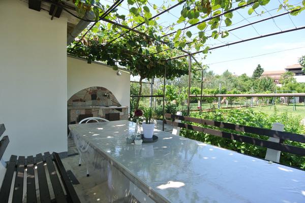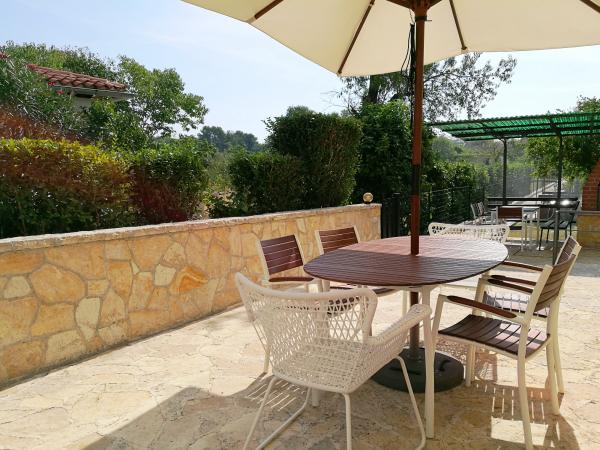 Az ingatlan Banjole egy csendes utcájában található, Pula, Premantura és Medulin közelében, közel a tengerhez, távol a zajtól. Három tágas és kényelmes apartman található a házban, valamint egy különálló kerti házikó. Mindössze 200 méterre találhatók a tengertől, 3 autó számára saját parkolóval rendelkezünk, és szükség esetén további parkolási lehetőséget biztosítunk a ház közelében található nyilvános területen. A kert 500 m2-es, a kert pedig 900 m2-es. 3 grillező áll rendelkezésünkre, légkondicionáló, teraszok és erkélyek állnak vendégeink rendelkezésére. A kertben játszótér is található. Ideális egy csendes családi nyaraláshoz, különféle látnivalók és létesítmények közelében.