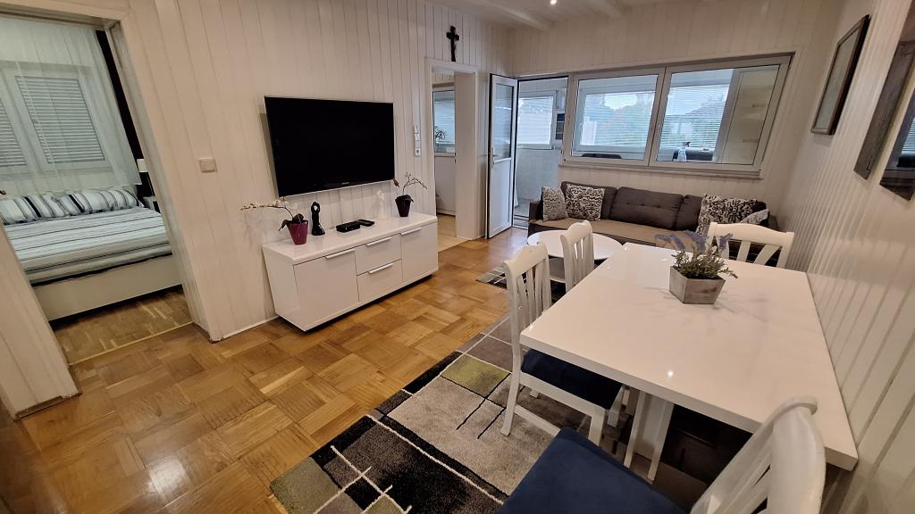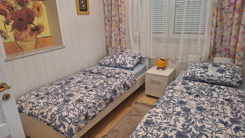 A MARIJA apartman egy tágas apartman 3 hálószobával és egy nappalival. Előtte egy fedett és üvegezett terasz található. A bejárat mellett egy kis szabad hely található, ahol leülhet, és esetleg grillezhet is, amely az apartmanban rendelkezésre áll. Közvetlenül a bejárat előtt 2 fedett parkolóhely található 2 autó számára.