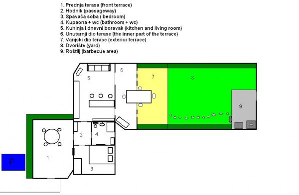 Barbariga, turisztikai falu közelében Pula A legszebb része az isztriai tengerparton. Ideális gyermekes családok számára. Barbariga turisztikai célpontja Isztria található a dél-nyugati részén az Isztriai tengerpart, 15 km-re nyugatra Pula. Észak-Barbariga található Rovinj gyöngyszeme az Adria. A Barbariga láthatod szigetek Brijuni Nemzeti Park híres az egész világon, amely szerepel az UNESCO műemlék, a természeti és kulturális örökség, amelyeket érdemes felkeresni. Ez egy nagyszerű hely a gyermekes családok és a természet szerelmeseinek. Itt akkor számíthat egy kellemes, csendes, tágas és gyönyörű strandok, kristálytiszta és meleg tenger. A lakosztályok állnak, egy hálószoba, fürdőszoba, konyha, nappali kihúzható kanapéval alkalmas további két ágy és egy terasz vagy kert. Az apartmanok felszereltsége: légkondicionáló, műholdas TV-vel. A konyha teljesen felszerelt. Biztosított törölközők, ágynemű és takarók. Takarítás történik rendszeresen az indulás után. Ingyenes parkolási lehetőség közvetlenül az épület előtt a lakásban