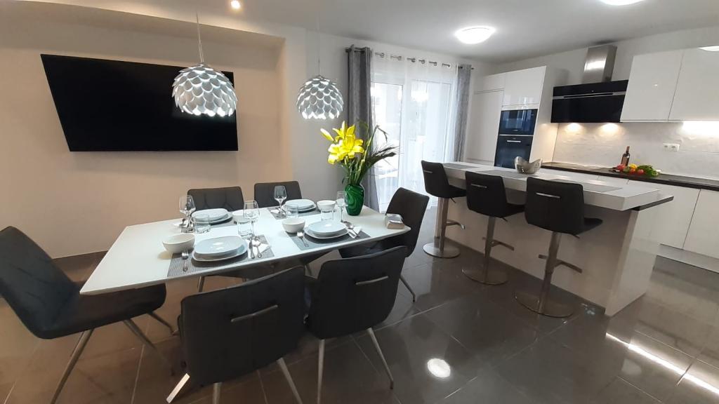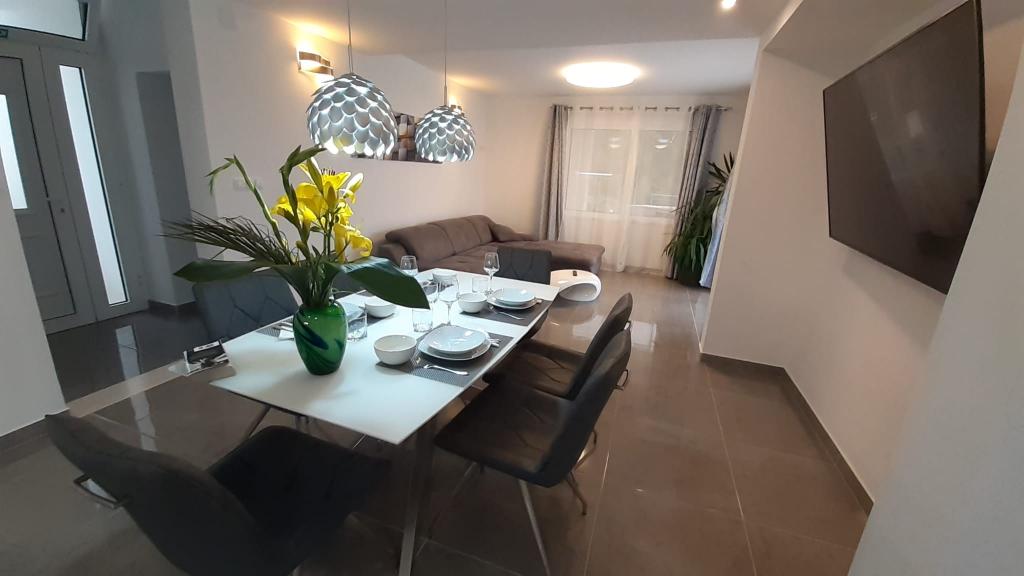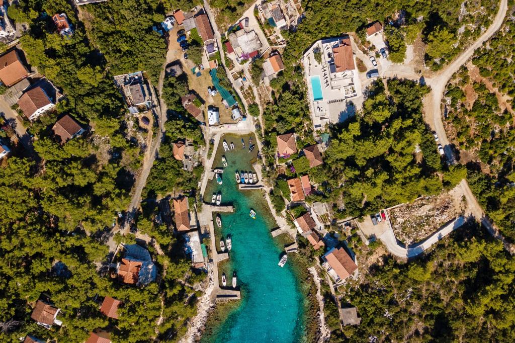 A 4 apartmanos, modern berendezésű apartmanház Hvar szigetén, Mudri Dolac csendes öblében található. A létesítmény 100 m-re található a tengertől. Saját parkolóval, internet-hozzáféréssel, szabadtéri grillezővel és úszómedencével rendelkezik. Az uszoda 01.06.-10.01.-ig használható Jó idő esetén a fentieken kívül is van lehetőség az uszoda használatára. Minden szállásegység a tengerre és a medencére néz. Ideális hely a pihenésre és a természet élvezetére.