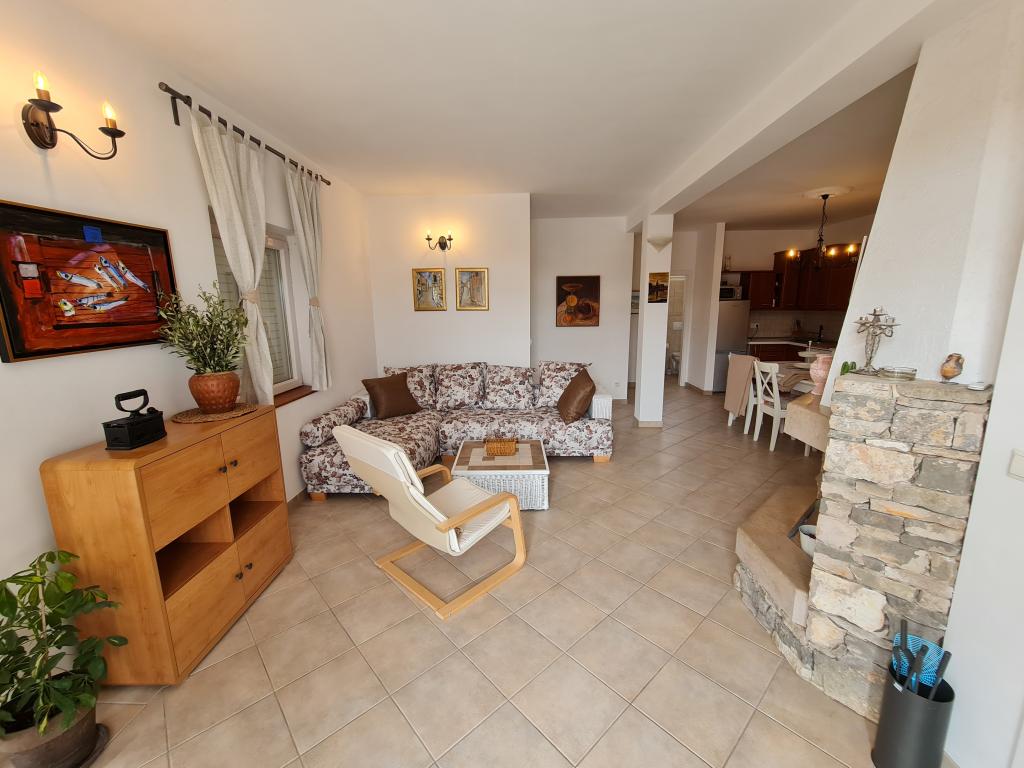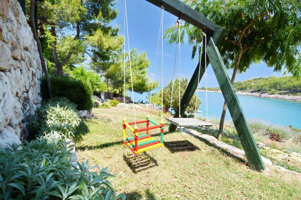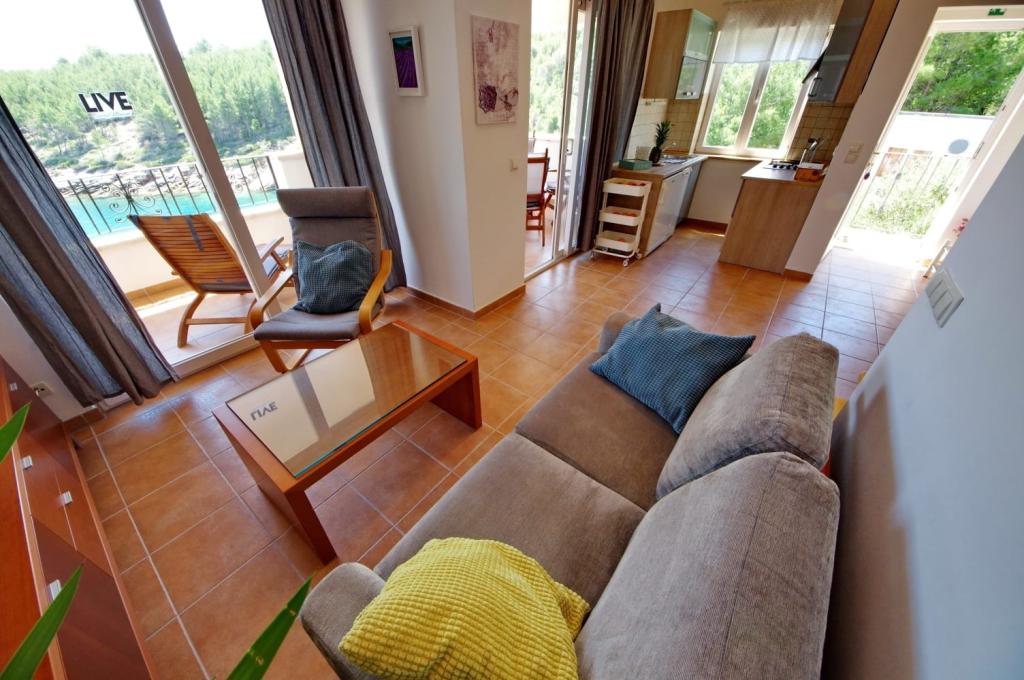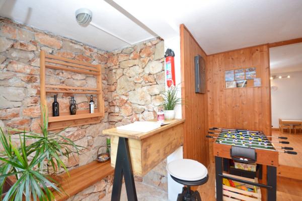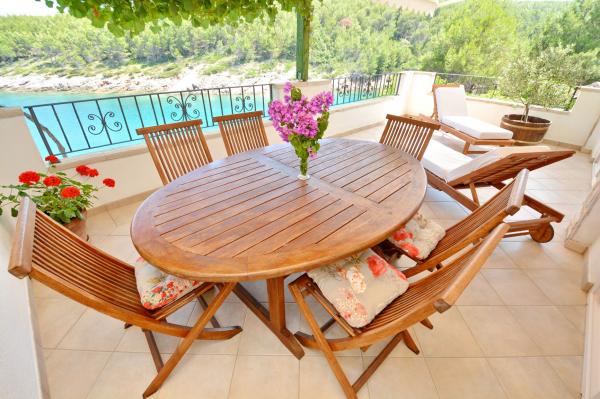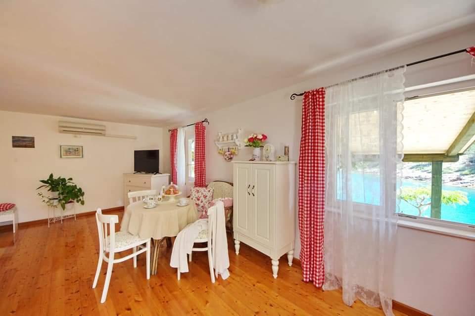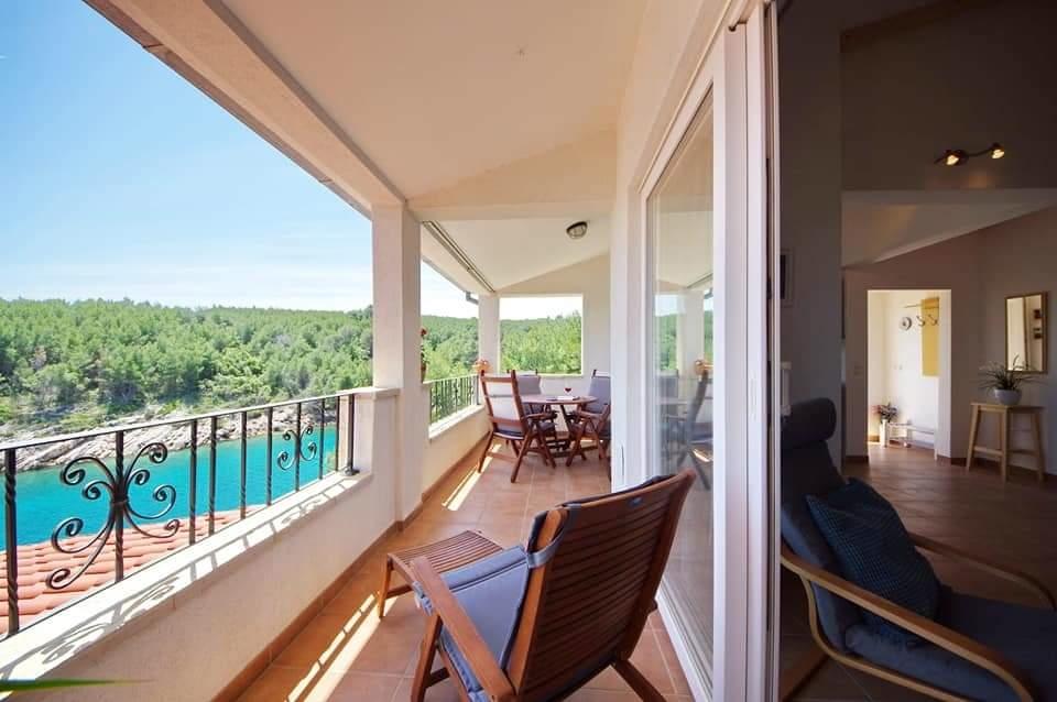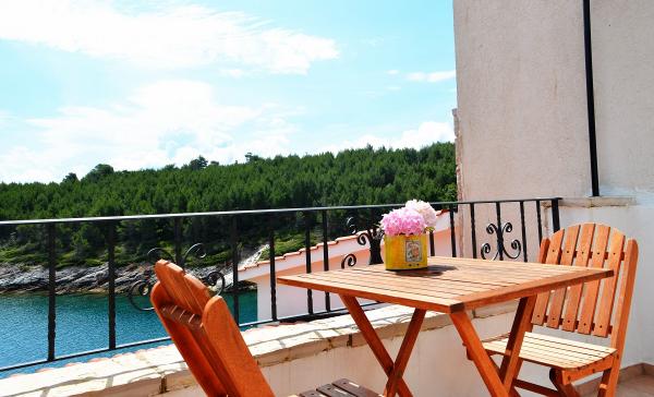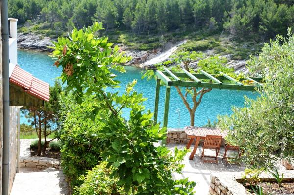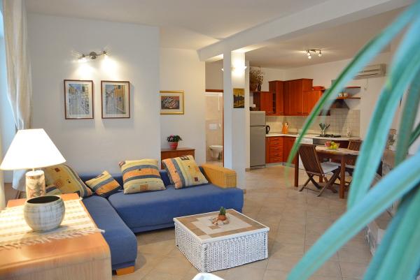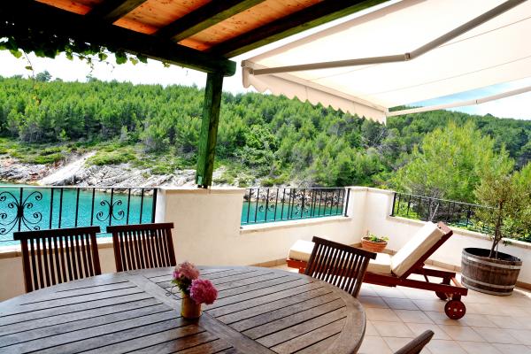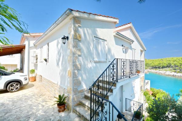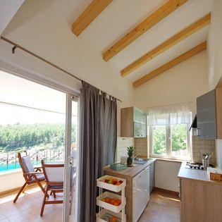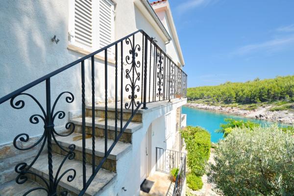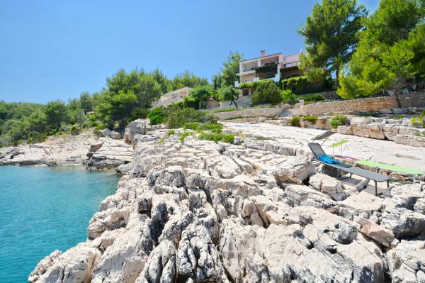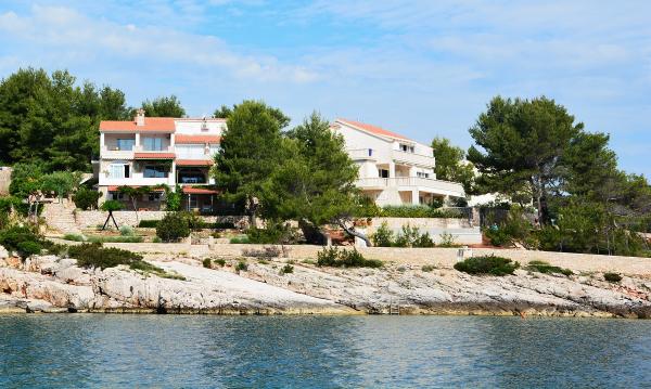 Apartmanház, lépcsőzetes, gyönyörű csendes öbölben, első sorban a tenger mellett, 6 teljesen felszerelt apartmannal, fitneszteremmel, saját parkolóval, 2 szabadtéri kandallóval, 2 szabadtéri zuhanyzóval, napozóval, kültéri jacuzzival, játszótérrel és kerttel. RUZMARIN (2) - 21 m2, külön bejáratú, földszint, terasz 20 m2, nappali konyhával és WC-vel. KADULJA (4) - 60 m2, külön bejáratú, középszint, terasz 25 m2, nappali konyhával és 2 hálószoba 2 WC-vel. ÁBRA (2) - 40 m2, külön bejáratú, felső emelet, terasz 7 m2, nappali konyhával, WC és hálószoba a tetőtérben. LAVANDA (4+1) - 60 m2, külön bejáratú, emelet, terasz 15 m2, előszoba, nappali konyhával és 2 hálószoba 2 WC-vel. MASLINA (4) - 65 m2, külön bejáratú, középszint, terasz 20 m2, előszoba, nappali konyhával és kandallóval, 2 hálószoba 2 WC-vel. LOVOR (2+1) - 45 m2, külön bejáratú, földszint, terasz 20 m2, nappali konyhával és hálószoba WC-vel.