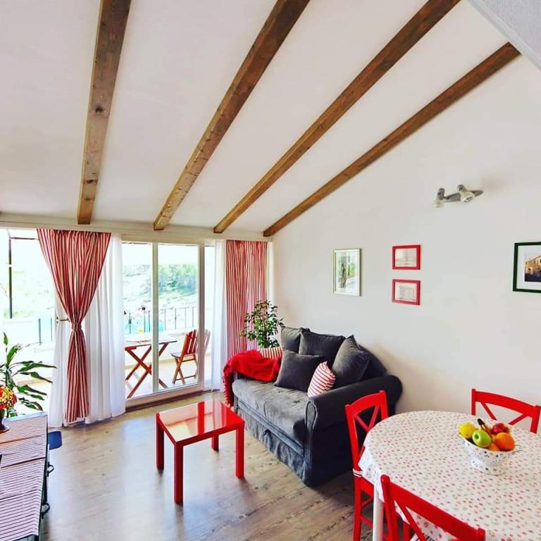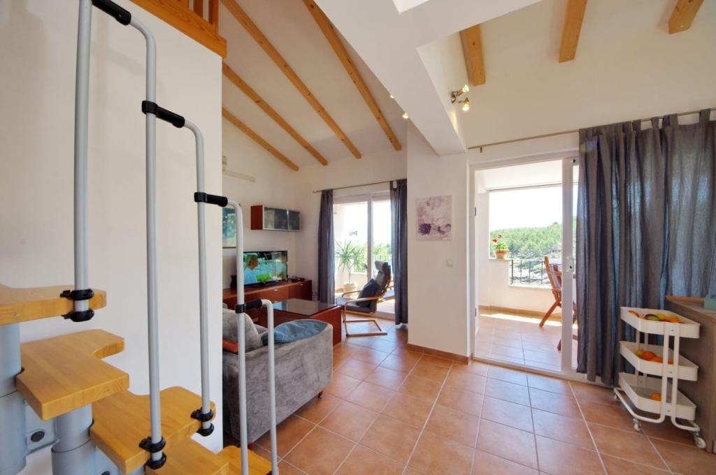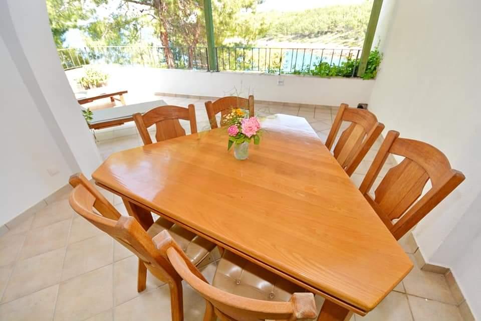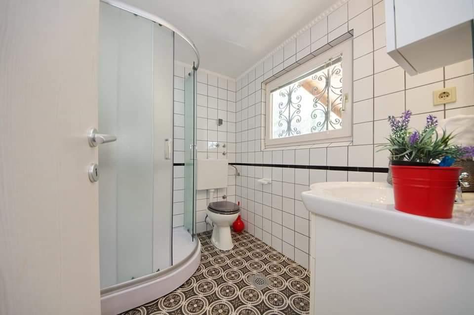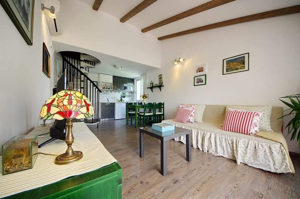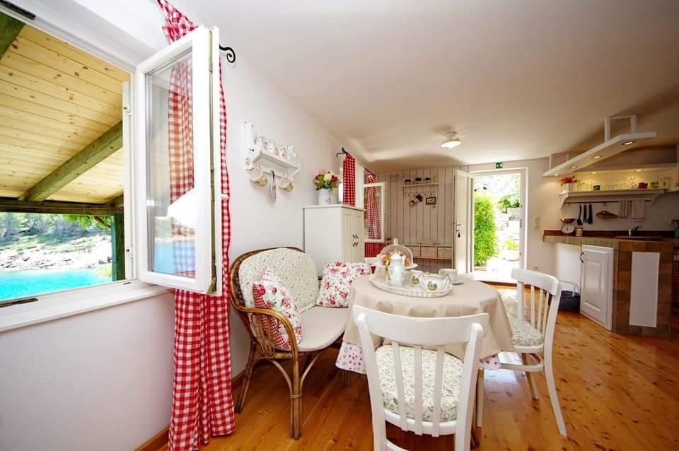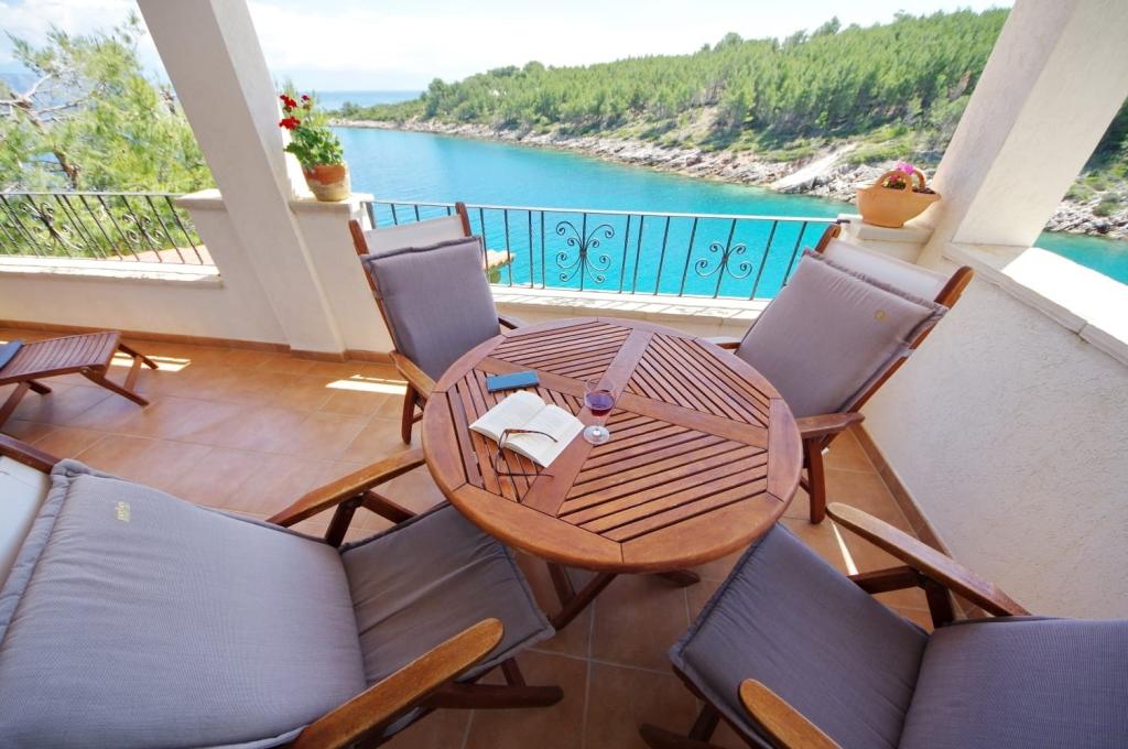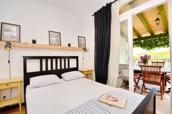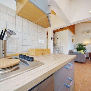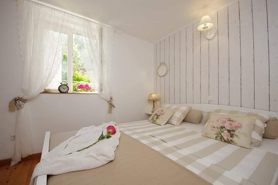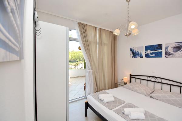 Apartmanház, lépcsőzetes, gyönyörű csendes öbölben, első sorban a tenger mellett, 6 teljesen felszerelt apartmannal, fitneszteremmel, saját parkolóval, 2 szabadtéri kandallóval, 2 szabadtéri zuhanyzóval, napozóval, kültéri jacuzzival, játszótérrel és kerttel. RUZMARIN (2) - 21 m2, külön bejáratú, földszint, terasz 20 m2, nappali konyhával és WC-vel. KADULJA (4) - 60 m2, külön bejáratú, középszint, terasz 25 m2, nappali konyhával és 2 hálószoba 2 WC-vel. ÁBRA (2) - 40 m2, külön bejáratú, felső emelet, terasz 7 m2, nappali konyhával, WC és hálószoba a tetőtérben. LAVANDA (4+1) - 60 m2, külön bejáratú, emelet, terasz 15 m2, előszoba, nappali konyhával és 2 hálószoba 2 WC-vel. MASLINA (4) - 65 m2, külön bejáratú, középszint, terasz 20 m2, előszoba, nappali konyhával és kandallóval, 2 hálószoba 2 WC-vel. LOVOR (2+1) - 45 m2, külön bejáratú, földszint, terasz 20 m2, nappali konyhával és hálószoba WC-vel.