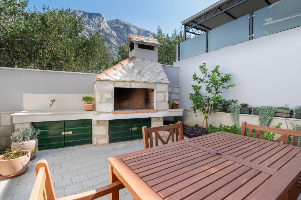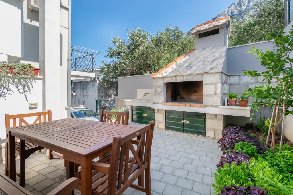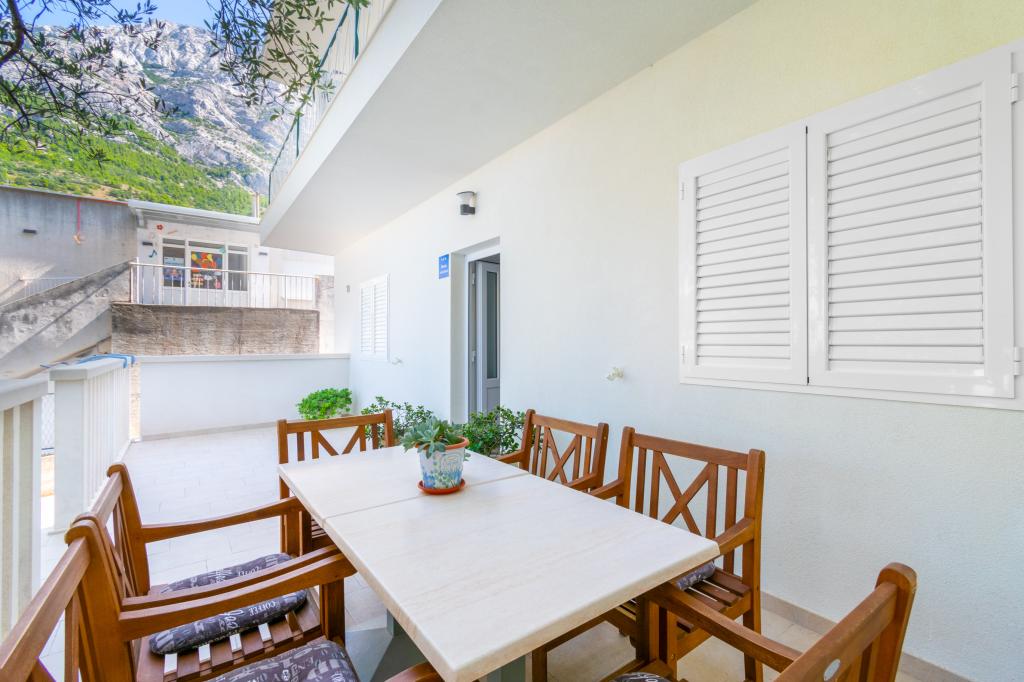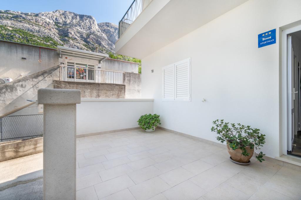 Egy tágas és frissen felújított háromszobás apartman (6+1) a gyönyörű Baška Voda városában, a Biokovo lábánál található. Az apartmanban 2 tágas szoba franciaággyal és egy szoba franciaággyal és 1 pótággyal, 2 fürdőszoba, modern és felszerelt konyha és tágas terasz található Biokovóra és a tengerre. Az apartmanban minden megtalálható, ami egy gondtalan, kellemes és nyugodt nyaraláshoz kell: nagy terasz, klíma, wi-fi, LCD/SMART TV, mosógép, grill, parkolóhely, ágynemű, törölköző. A piac, a pékség, a hentes, a posta, a gyógyszertár, a kávézók és a strandok mindössze néhány perces sétával elérhetők. Baška Voda központja mindössze 5 perces sétára található az apartmantól, ahol számos étterem, étkezési lehetőség és ajándékbolt várja a vendégeket. Nyáron is gazdag adrenalin sportok, (jet-ski, sup board, parasailing) szórakozási lehetőségek a legkisebbek számára (új és tetszetős vízibicikli, félig tengeralattjáró), nyugágyak. A lakás elhelyezkedése és a központ közelsége miatt év közben még autóra sincs szükség.