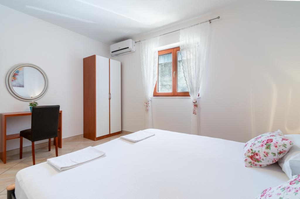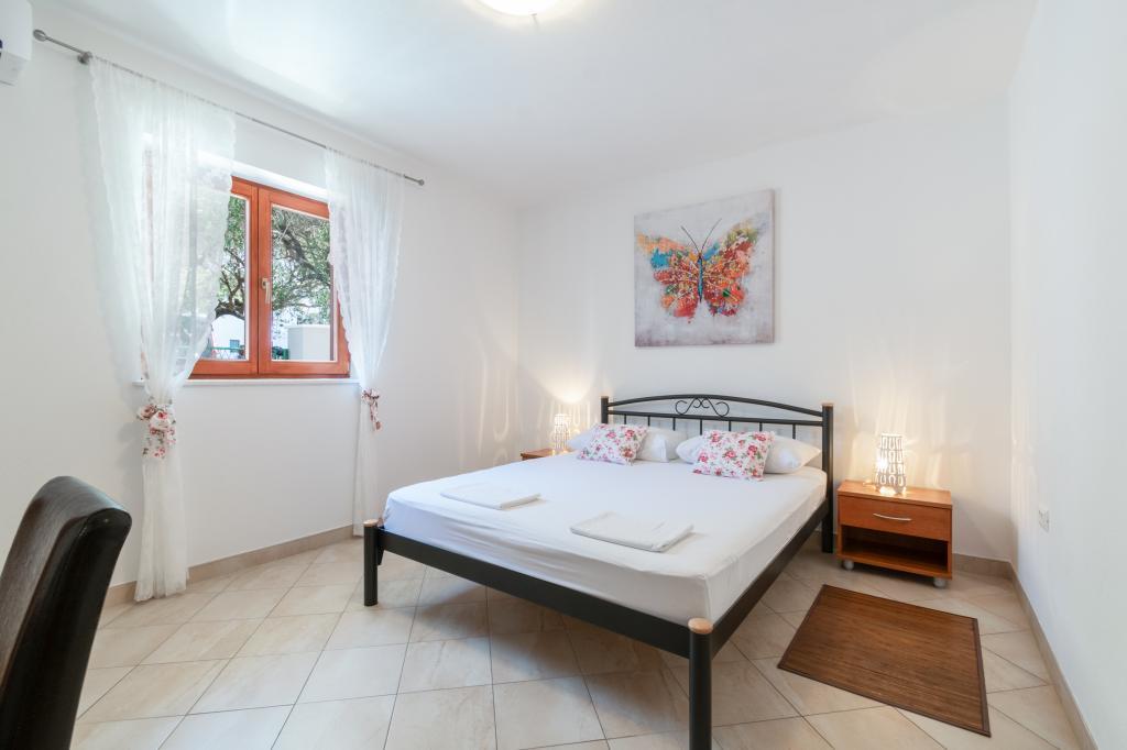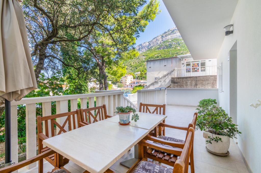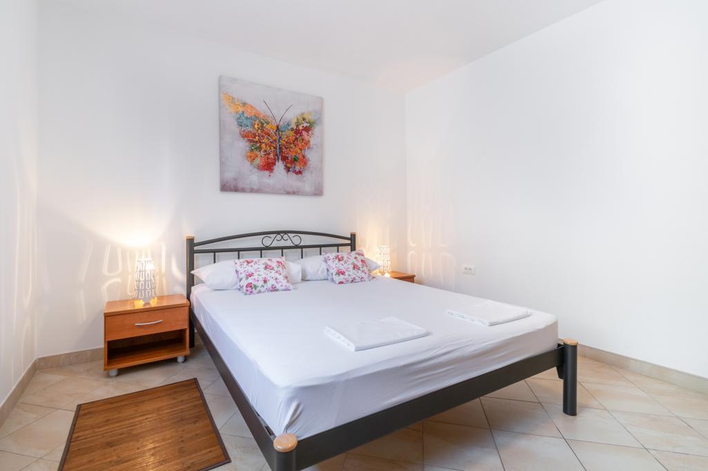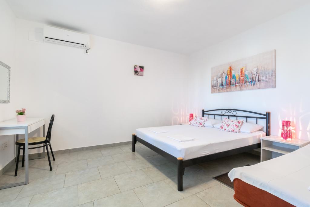 Egy tágas és frissen felújított háromszobás apartman (6+1) a gyönyörű Baška Voda városában, a Biokovo lábánál található. Az apartmanban 2 tágas szoba franciaággyal és egy szoba franciaággyal és 1 pótággyal, 2 fürdőszoba, modern és felszerelt konyha és tágas terasz található Biokovóra és a tengerre. Az apartmanban minden megtalálható, ami egy gondtalan, kellemes és nyugodt nyaraláshoz kell: nagy terasz, klíma, wi-fi, LCD/SMART TV, mosógép, grill, parkolóhely, ágynemű, törölköző. A piac, a pékség, a hentes, a posta, a gyógyszertár, a kávézók és a strandok mindössze néhány perces sétával elérhetők. Baška Voda központja mindössze 5 perces sétára található az apartmantól, ahol számos étterem, étkezési lehetőség és ajándékbolt várja a vendégeket. Nyáron is gazdag adrenalin sportok, (jet-ski, sup board, parasailing) szórakozási lehetőségek a legkisebbek számára (új és tetszetős vízibicikli, félig tengeralattjáró), nyugágyak. A lakás elhelyezkedése és a központ közelsége miatt év közben még autóra sincs szükség.