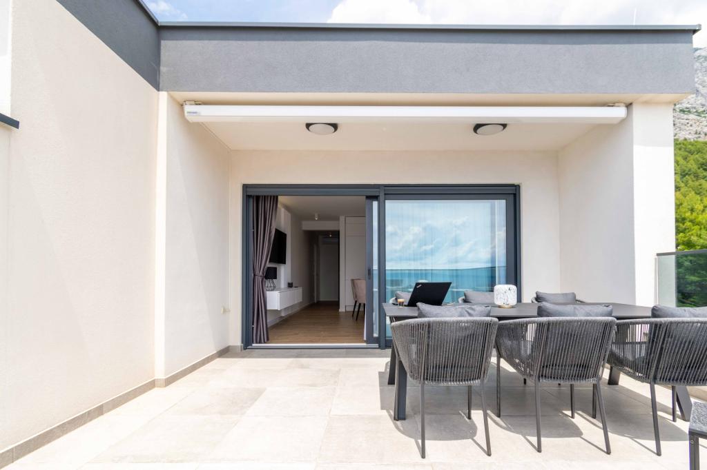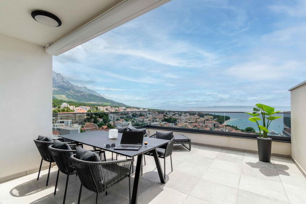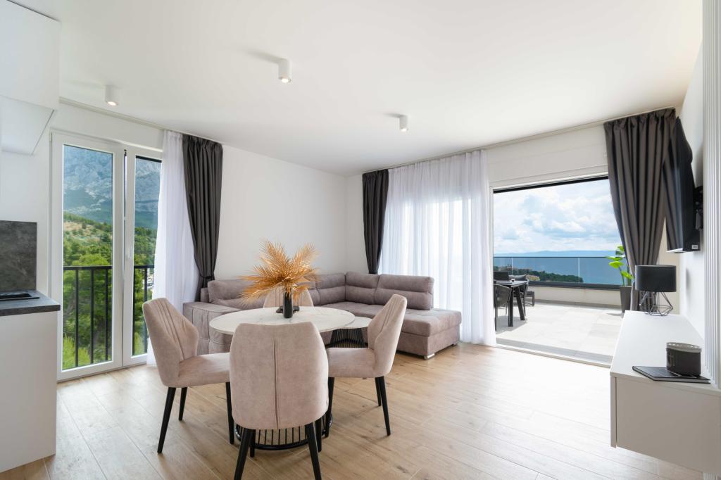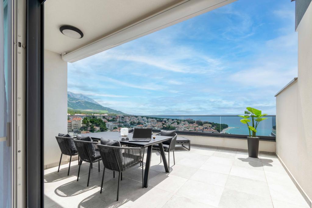 Az Apartment Sky különleges szállást kínál, felejthetetlen kilátással a tengerre, Bračra és Baška Vodára. A modern apartmanban 1 hálószoba, kanapéval berendezett nappali, valamint bútorokkal és nyugágyakkal berendezett, nagy terasz található. A ház mögött van egy privát parkolóhely.