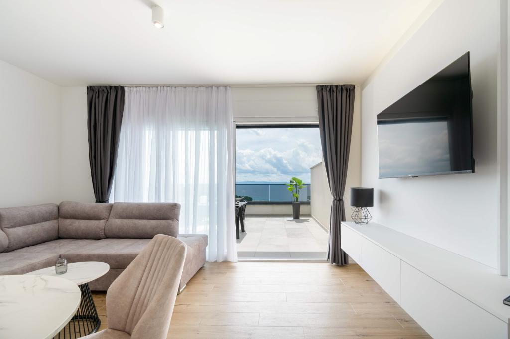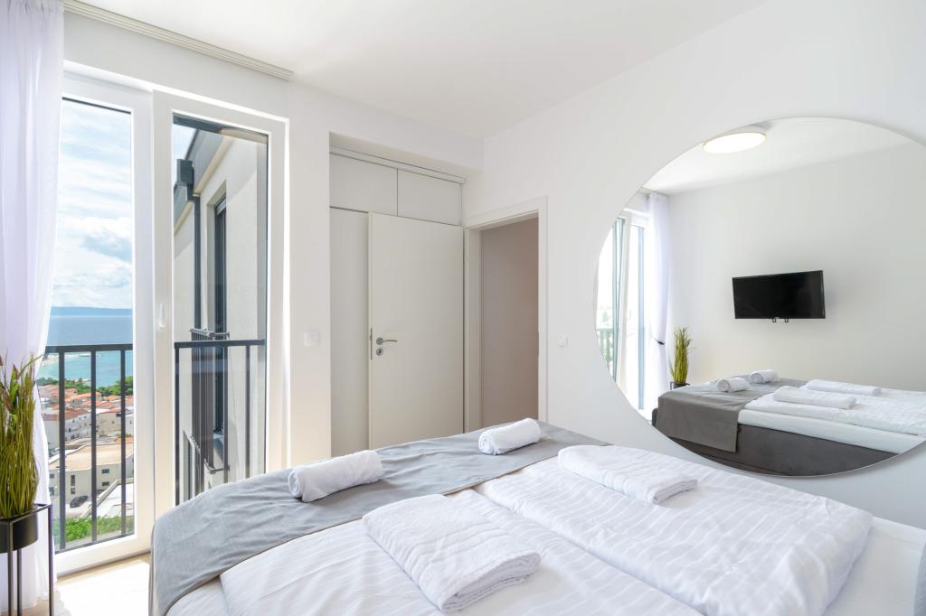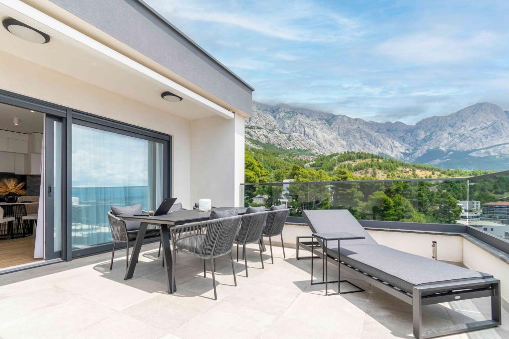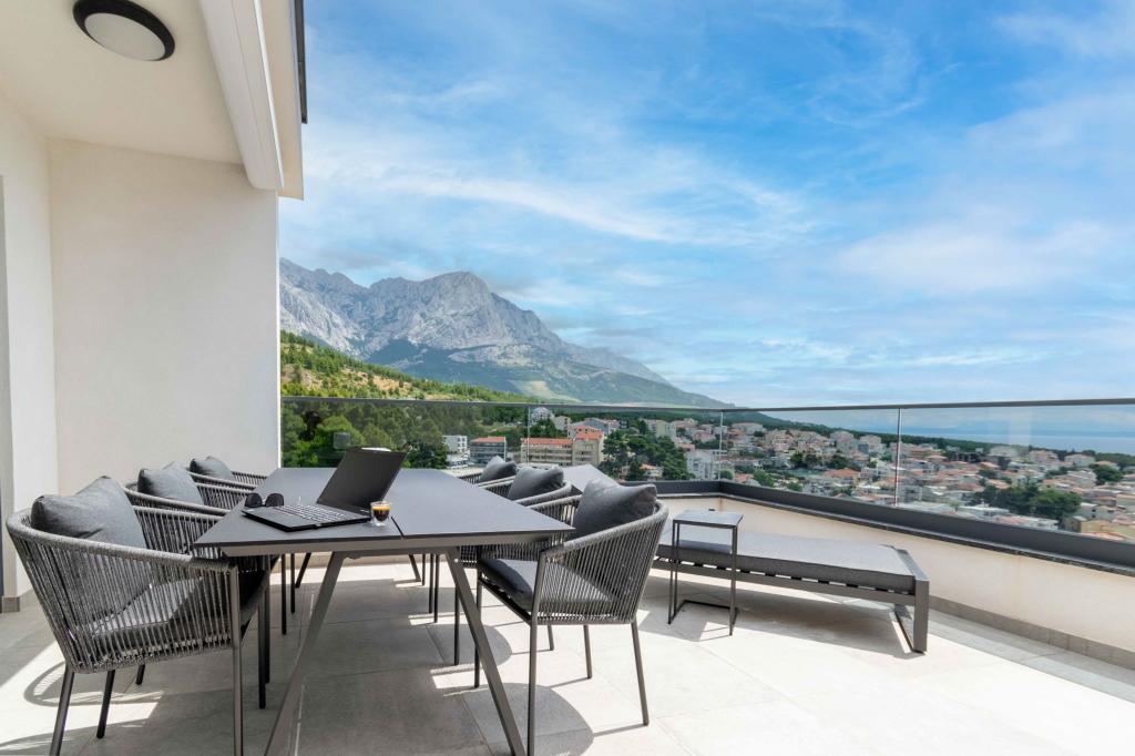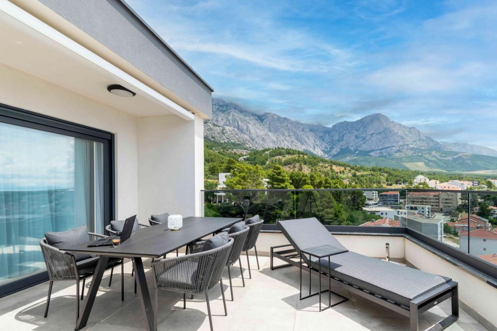 Az Apartment Sky különleges szállást kínál, felejthetetlen kilátással a tengerre, Bračra és Baška Vodára. A modern apartmanban 1 hálószoba, kanapéval berendezett nappali, valamint bútorokkal és nyugágyakkal berendezett, nagy terasz található. A ház mögött van egy privát parkolóhely.