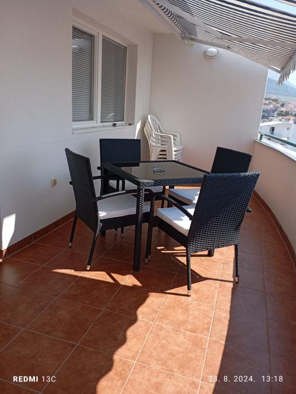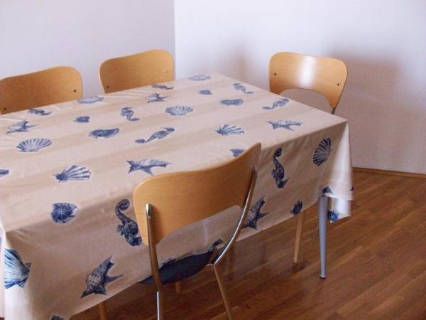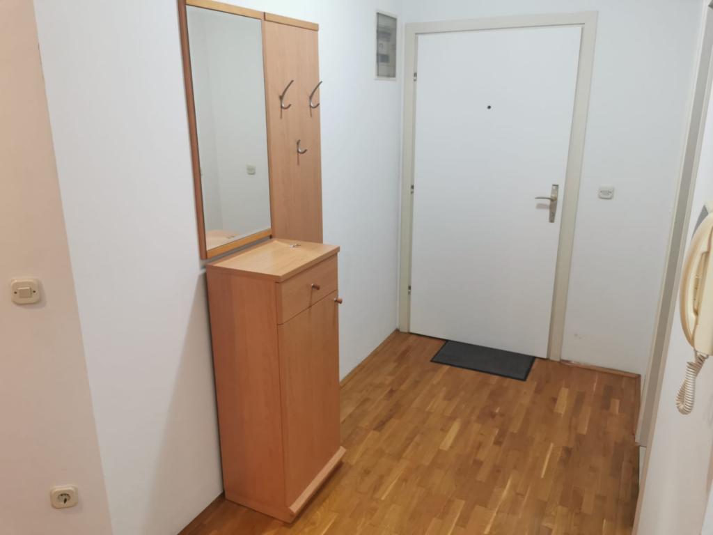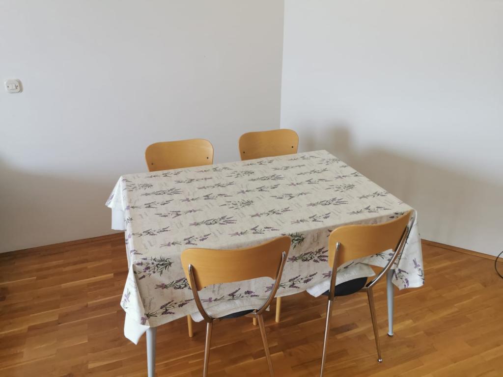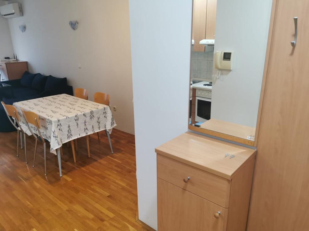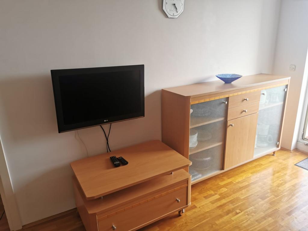 A lakás egy lakóépületben található. Egyszobás apartman nappalival, kanapéval és TV-vel. Van WIFI, klíma. A nappaliból a tengerre néző erkély kijárata a képeken látható. Konyha és étkező. A lakáshoz saját garázs tartozik a földszinten, ahonnan a belső lépcsőn lehet feljutni a lakásba.