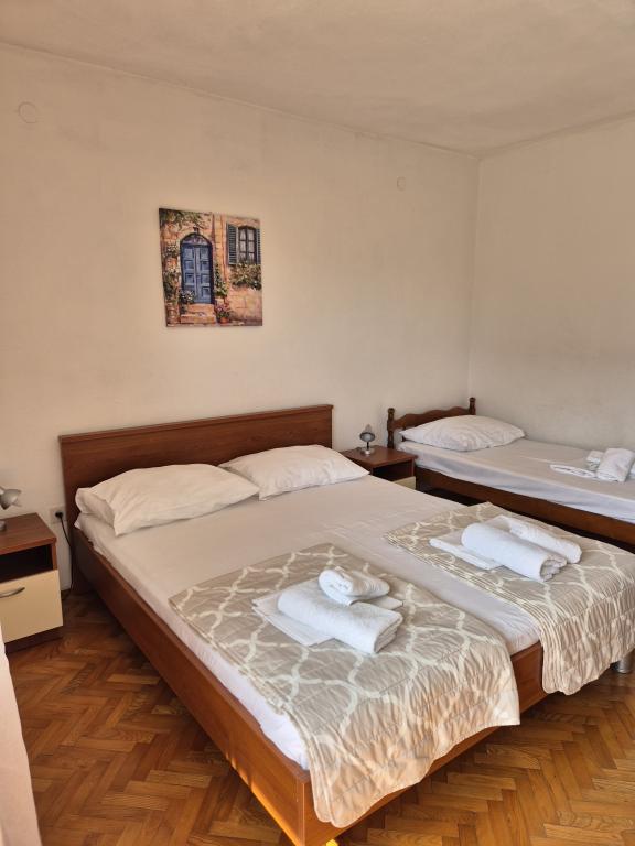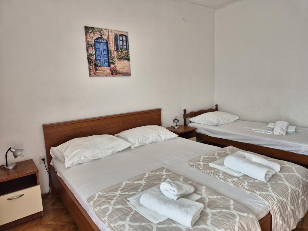 Teljesen és korszerűen felszerelt apartmanok Baska Voda csendes részén, parkolás és minden, a kellemes és gondtalan nyaraláshoz szükséges légkondicionáló (légkondicionálás, TV, Internet, mosógép, barbecue, ...), kellemes légkörben. Közel a tengerhez (200m), szórakozási lehetőségek és sok strand. PRIVÁT PARKOLÁS elérhető a helyszínen. A vezeték nélküli internethozzáférés az egész épületben elérhető és ingyenes. Népszerű gyermekes családok számára (tágas kert és kert, csendes hely). A APARTMAN: 2 tágas hálószoba erkéllyel (2 franciaágy és 1 egyszemélyes ágy), nappali 1 kanapéval, 3 fürdőszoba, konyha mosogatógéppel, étkező, kilátás a tengerre. B. APARTMAN: 2 hálószoba (2 franciaágy), 2 fürdőszoba, 2 erkély. C APARTMAN: 1 hálószoba (1 nagy franciaágy), kanapé az étkezőben, erkély. D. APARTMAN: 2 hálószoba (2 franciaágy), 1 fürdőszoba, tengerre néző erkéllyel.