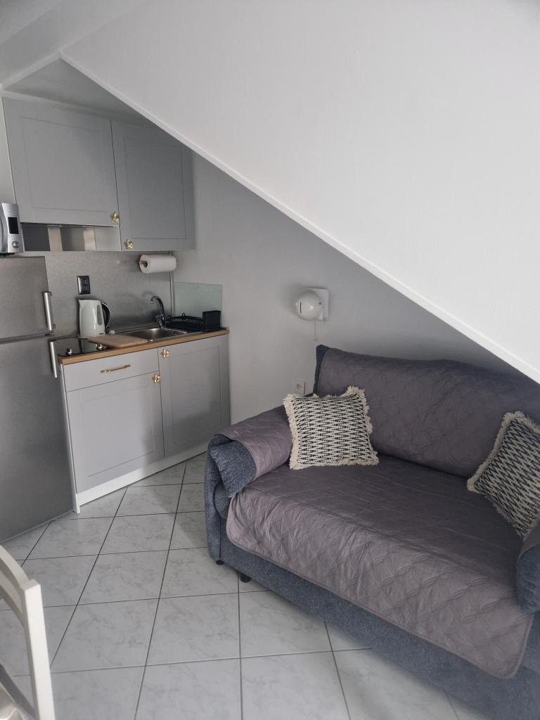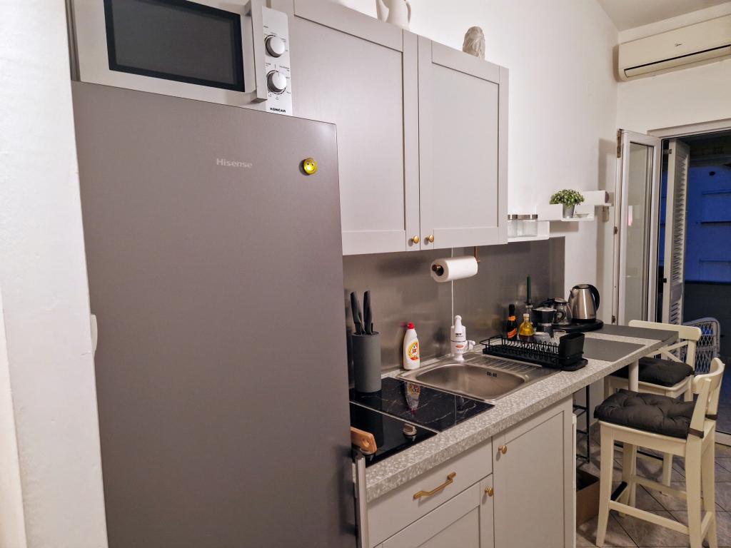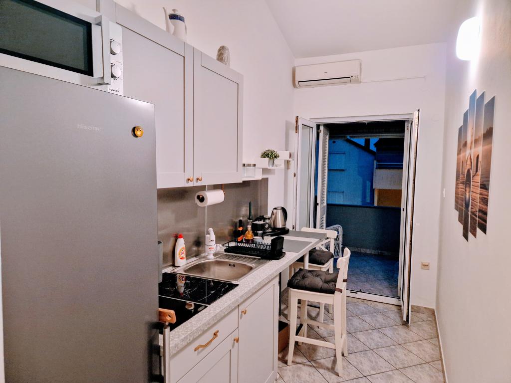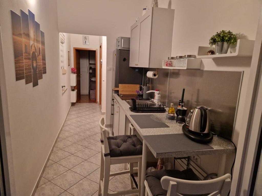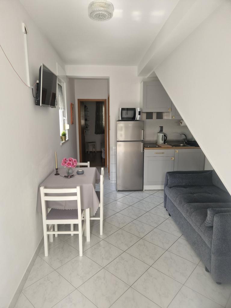 Teljesen felszerelt stúdiólakás két fő részére egy csendes utcában, 3 percre a tengertől, 10 percre a központtól... Egy 0-7 éves gyermek ingyenesen elszállásolható az 1. apartmanban (földszint)... és kisállatok...
