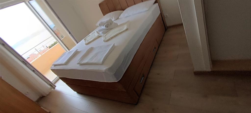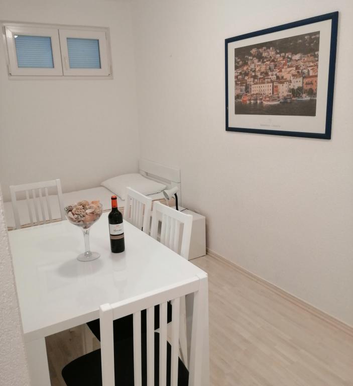 Legfelső emeleti apartman négy fő részére. Tiszta, tágas és mindennel felszerelt, amire szüksége lehet. Kényelmes ágyak és teljes tisztítószerkészlet. Gyönyörű kilátás az erkélyről, finom volt a reggeli kávé. Damira, a házigazdánk, nagyon jól gondoskodott rólunk. Otthon éreztük magunkat. Ajánlom a helyet, szívesen visszatérünk oda.