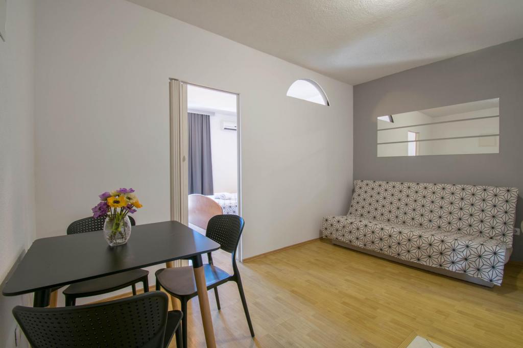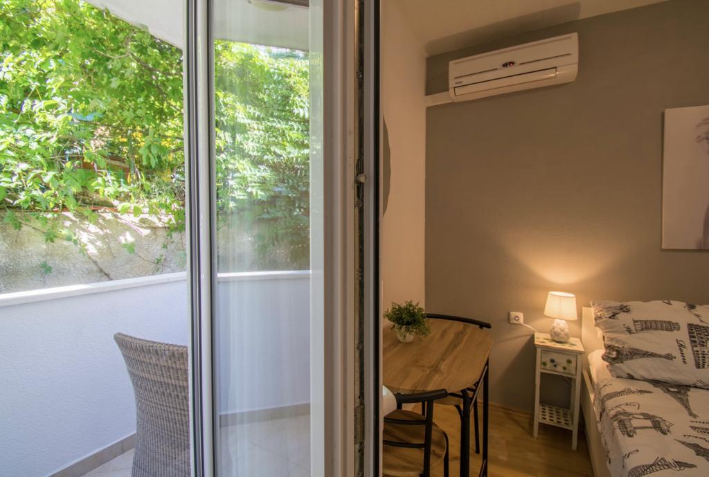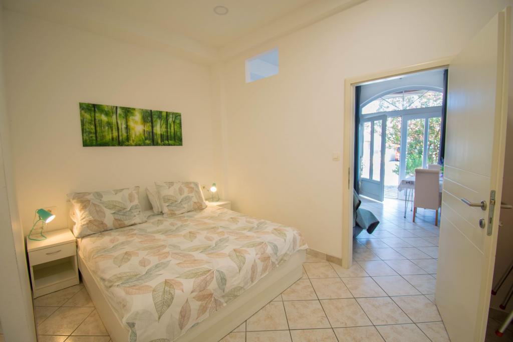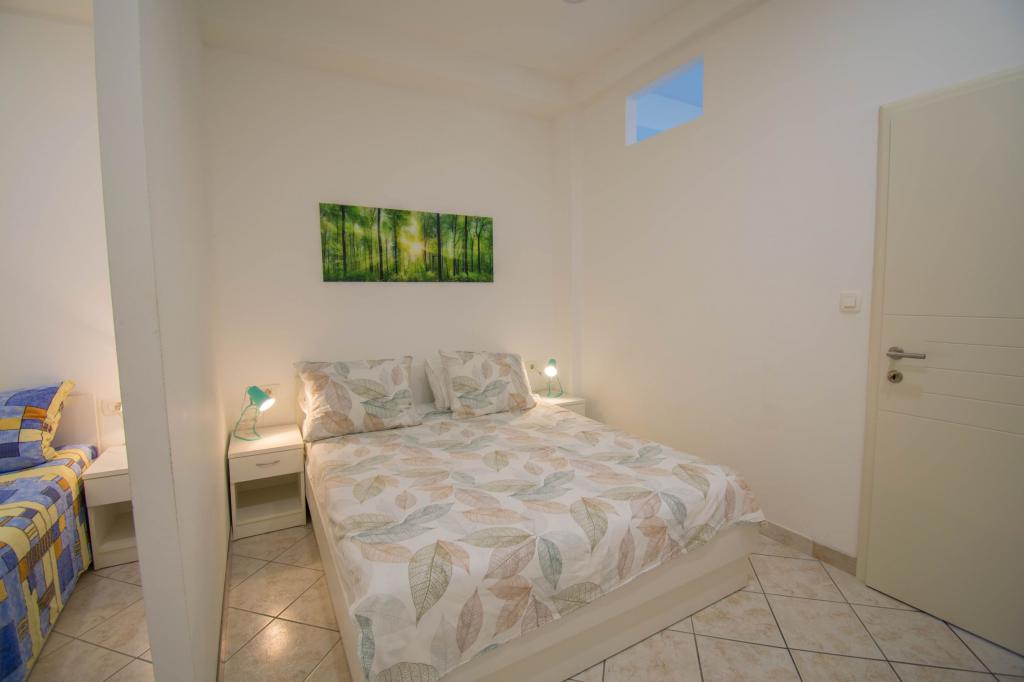 A lakás a földszinten, az utcán volt, így nyitott ajtóval nem lehetett aludni. Klíma, mint mindenhol, csak a fő nappaliban. Csak a fő nappaliban van egy ablak, a hálószobában nincs ablak, de ez egy plusz volt, mert ott nem sütött a nap. A ruhaszárító plusz, mínusz a felszerelés, pár tányér és pohár, mikrohullámú sütő nincs, de a bejárat előtt volt egy bogrács székekkel, az utca ellenére senki nem nézte a tányérokat, de van egy kis terasz . Parkolás a ház mögötti magasságban. Az emeleti szobák hangulatosabbak lennének.