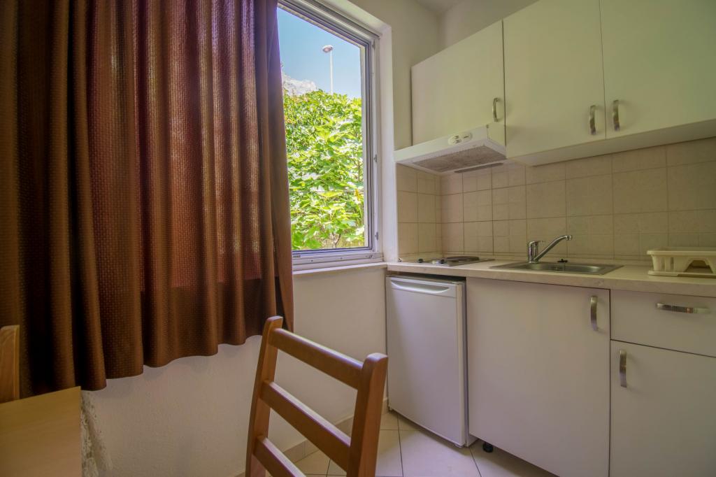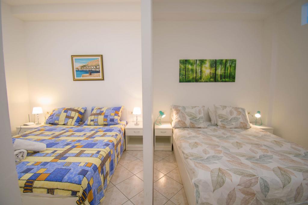 Az ingatlan található, egy csendes részén a Baska Voda. A létesítmény található, 3 perc sétára a városközponttól és a strandtól. Az étterem 20 méterre található a szállástól. Közel a boltok, a távolság 40 méter. Két lakás a földszinten akadálymentesített hozzáférés. A parkolás benne van az árban. Lehetőség szállítás a repülőtérről a szállásra pótdíj.