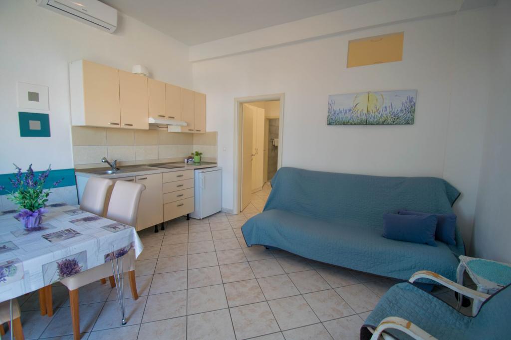 Az ajánlatban leírt lakás. A falu főútján található, így nagyon könnyű megtalálni. Közel van a strandhoz és a városközponthoz - maximum 5 perc sétára. Parkolás lehetséges, de nem magán az ingatlanon, csak kb 150-200 m-re. Nagyon közel - több száz méteres körzetben piacok és pékség. A bérelt lakás a földszinten volt. Tiszta és szép volt. Működő klíma van. Kényelmes és teljesen felszerelt konyha (edények, tányérok, poharak és egyéb edények, hűtőszekrény és kétégős elektromos tűzhely). Fürdőszoba zuhanyzóval - minden rendben. A szobákban nagy szekrények és nagy, nagyon kényelmes ágyak találhatók. A lakás kijáratánál van egy kis terasz asztallal, de szinte a járdán ülsz (nem tudom ez hátrány vagy előny). A tulajdonos nagyon kedves és segítőkész. Nagyon jól beszél angolul. Nagyon ajánlom ezt a lakást.