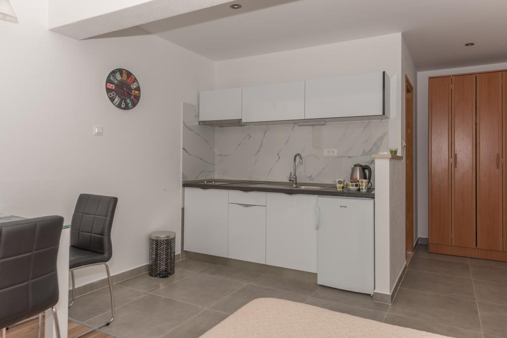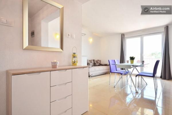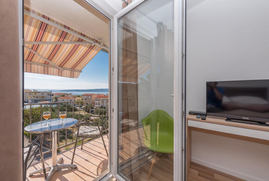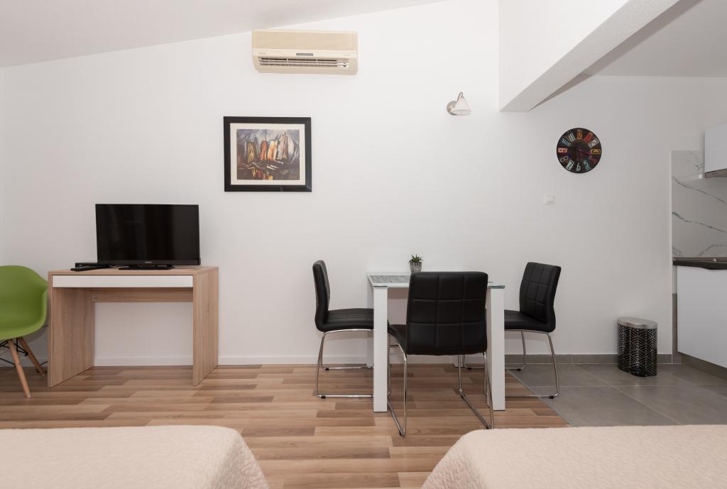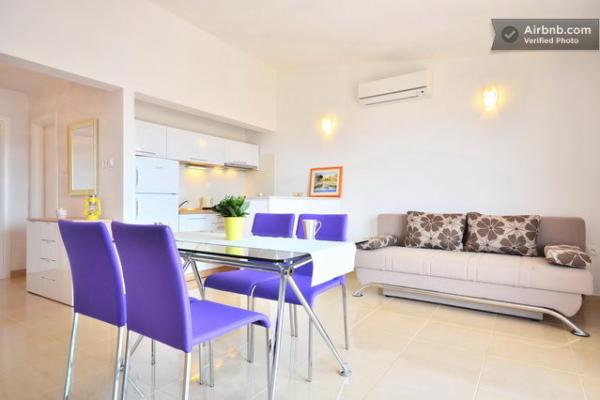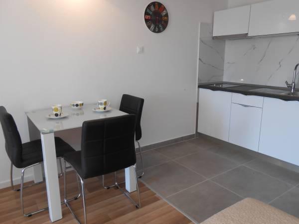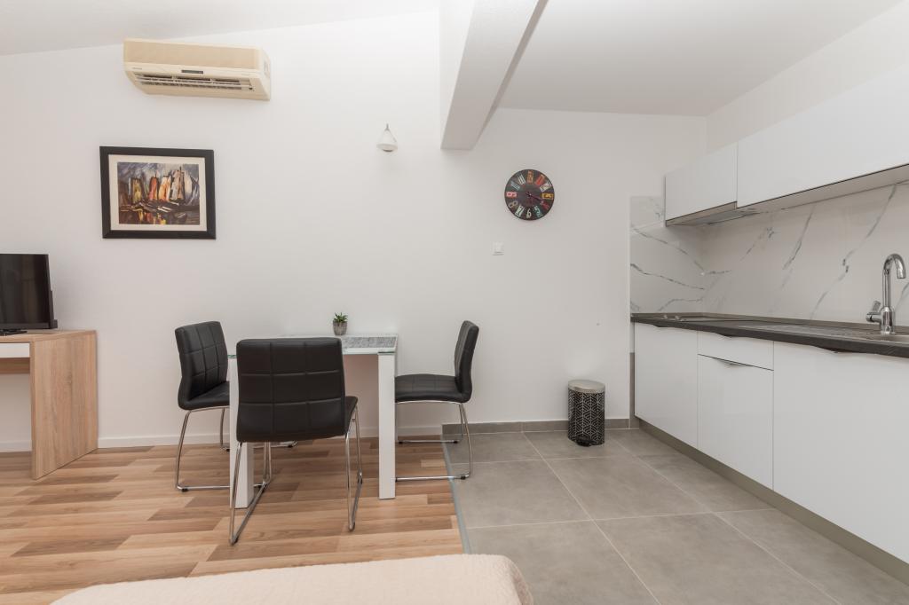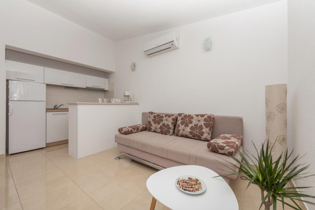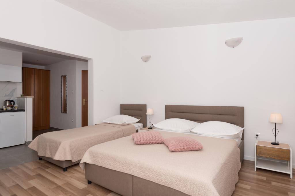 Légkondicionált apartmanok tengerre néző kilátással, mindössze 200 méterre a főstrandtól, 4 perc sétára 2+2 ÁGYAS APARTMAN - kényelmes. modern berendezésű apartman - 50 m2, külön hálószoba king size franciaággyal és kihúzható ággyal 2 fő részére a nappaliban. 4+ 1 ÁGYAS APARTMAN 2 hálószobával, nagy nappali kihúzható ággyal 1 fő - gyermek részére. Családok és párok számára alkalmas. Teljesen légkondicionált, 3 légkondicionáló egység. 3. ÁGYAS APARTMAN kényelmes apartman 2-3 fő részére erkéllyel - látványos kilátás a tengerre és a szigetekre. . A környéken éttermek találhatók, parkolás a ház mellett,.