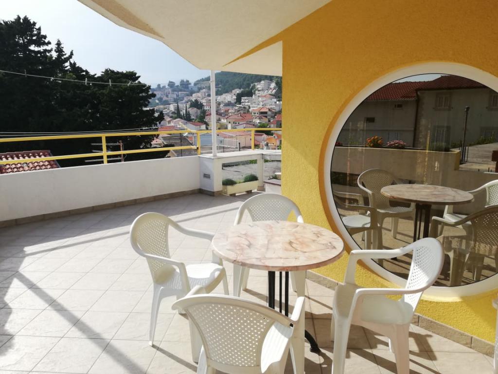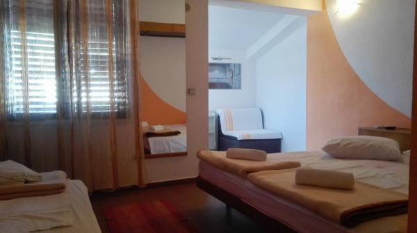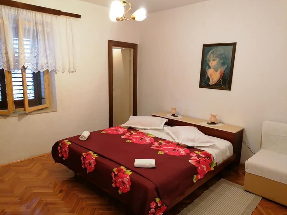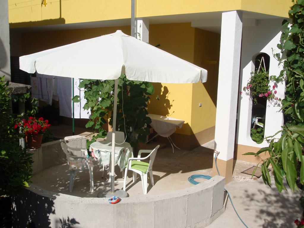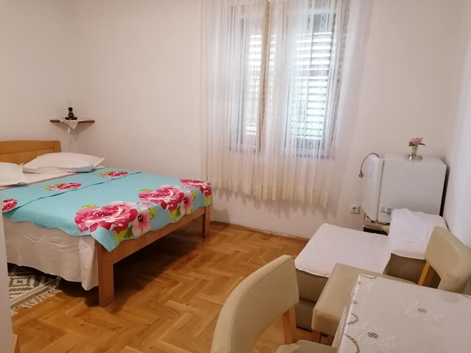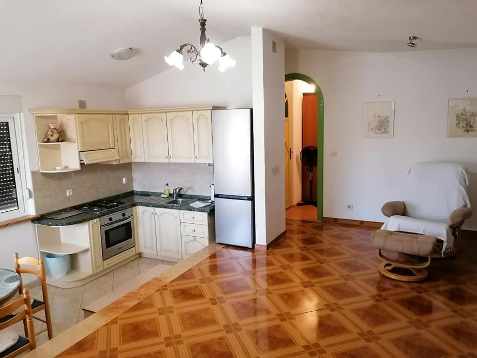 . Apartman, A szállásegység az első emeleten található. Tartalma: Két hálószoba - egy háromágyas és egy kétágyas - minden szobához tartozik saját WC-zuhanyzó, TV, légkondicionáló, hűtőszekrény. Az apartmanhoz egy konyha és egy tágas terasz tartozik. 12 m /. A lakás teljesen felszerelt ágyneművel, törölközővel, konyha készlet konyhai szolgáltatás, wi-fi, fenntartott parkoló. Távolság a strandtól 150 m. Mivel az apartman a falu központjában van, minden szükséges szolgáltatási lehetőség; éttermek, kávézók, szállodák, különféle teraszok, bank, posta, mentő, stb ... 50 és max. 200 m. A vendégek kerékpárt is kínálhatnak kikapcsolódásra, 7 méteres hajó kapitányával, egynapos kirándulásokra érdekes úti célok és halászat, valamint különböző idegenforgalmi információk tartózkodásuk alatt. A bérbeadó az Ön rendelkezésére áll.