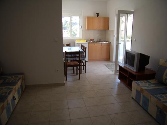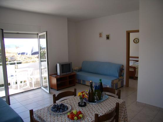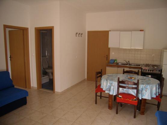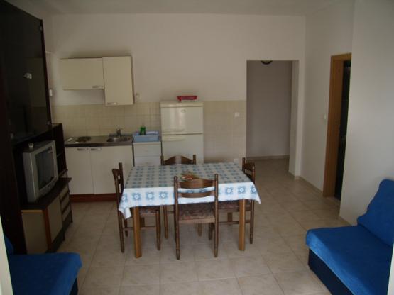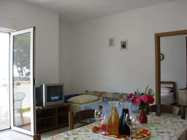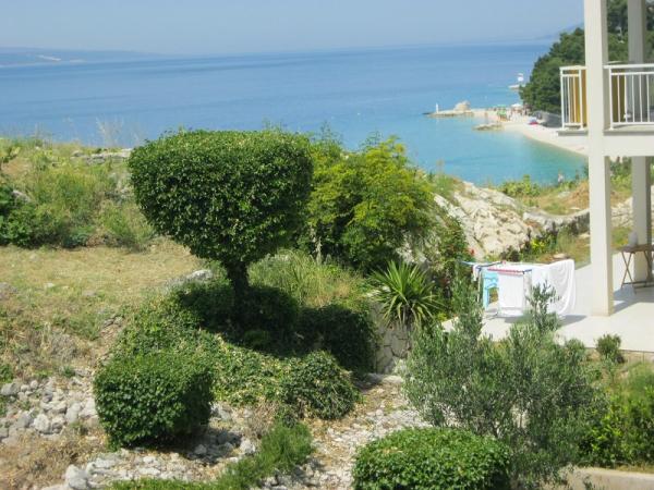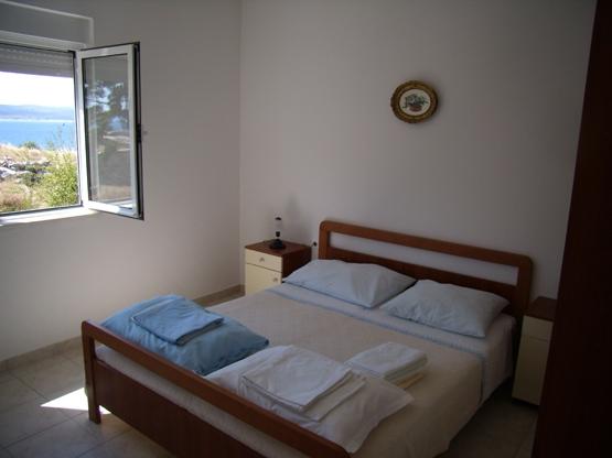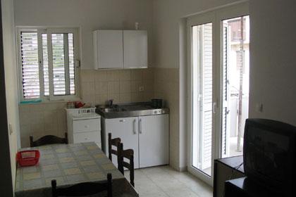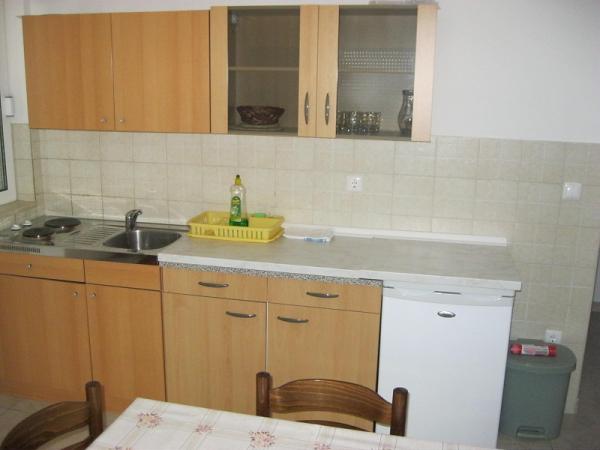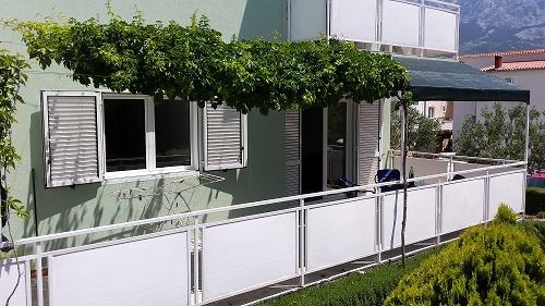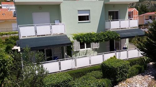 Apartments Baska Voda PAULA is new and located in the heart of the quiet and green area of Baška Voda sorrounded by Mediterranean vegetation. Apartments Baska Voda PAULA lays on a small hill above the sea (about 20 meters aerie ), 2-3 minutes walk away from the beautiful white pebbly beach and 5 minutes from the towns centre. There are six apartments : three on the high groundfloor and three on the first floor. Each apartment contains one double bedroom, bathroom, kitchen with dining and living area where there are two couches ( extra beds ) , air condition ,TV , balcony ( two balconies with marvellous sea view , two with view to the impressive Biokovo mountain and the others to „Gradina“ –archaeological finding from Roman times). The apartments are equipped with all necessary appliances. Private parking is in front of the house PAULA . Welcome to Apartments Baska Voda PAULA and have a nice hollidays!