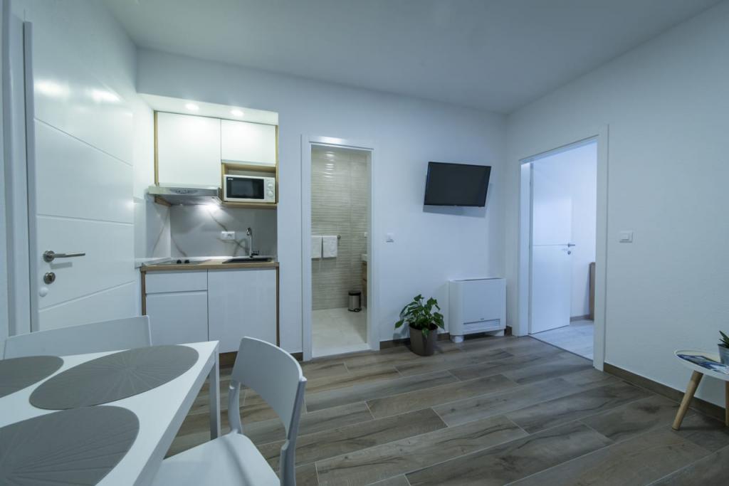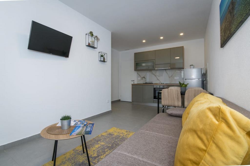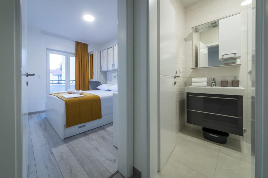 Az Apartments Spiline Baška Voda csendes részén, zöldövezetben helyezkedik el, mindössze 400 méterre a városközponttól és a strandtól. Minden apartmanban nappali található konyhával, hálószobával, fürdőszobával és erkéllyel vagy terasszal. légkondicionálóval, TV-vel és minden apartmanhoz parkolóval felszereltek. Az apartmanok kapacitása 2 ágyas hálószoba és további 2 pótágy a nappaliban a kanapén. A szolgáltatás mindig barátságos személyzet, aki angolul beszél. A tisztaság és a használhatóság mindig az első helyen áll. Az Apartments Sunce és a Sea várja Önt.