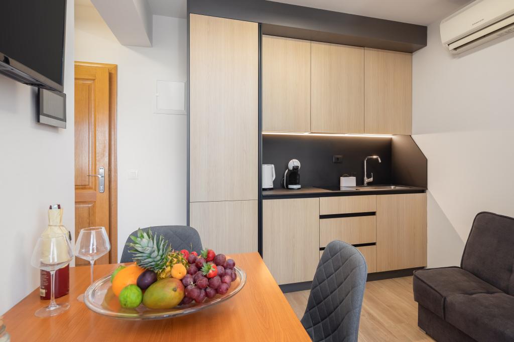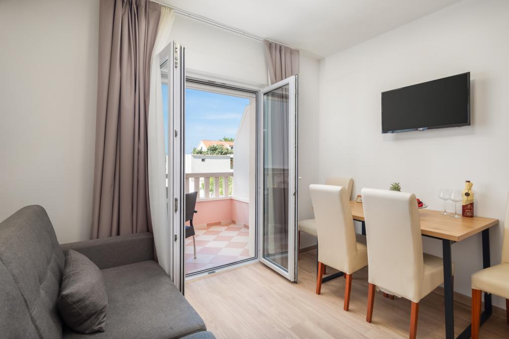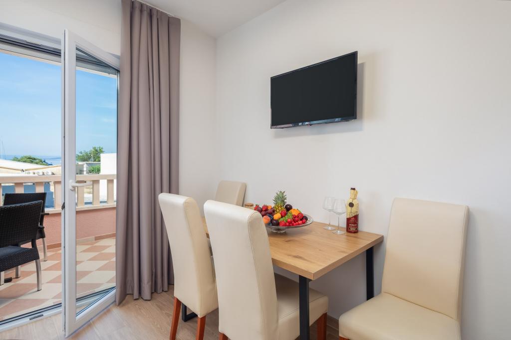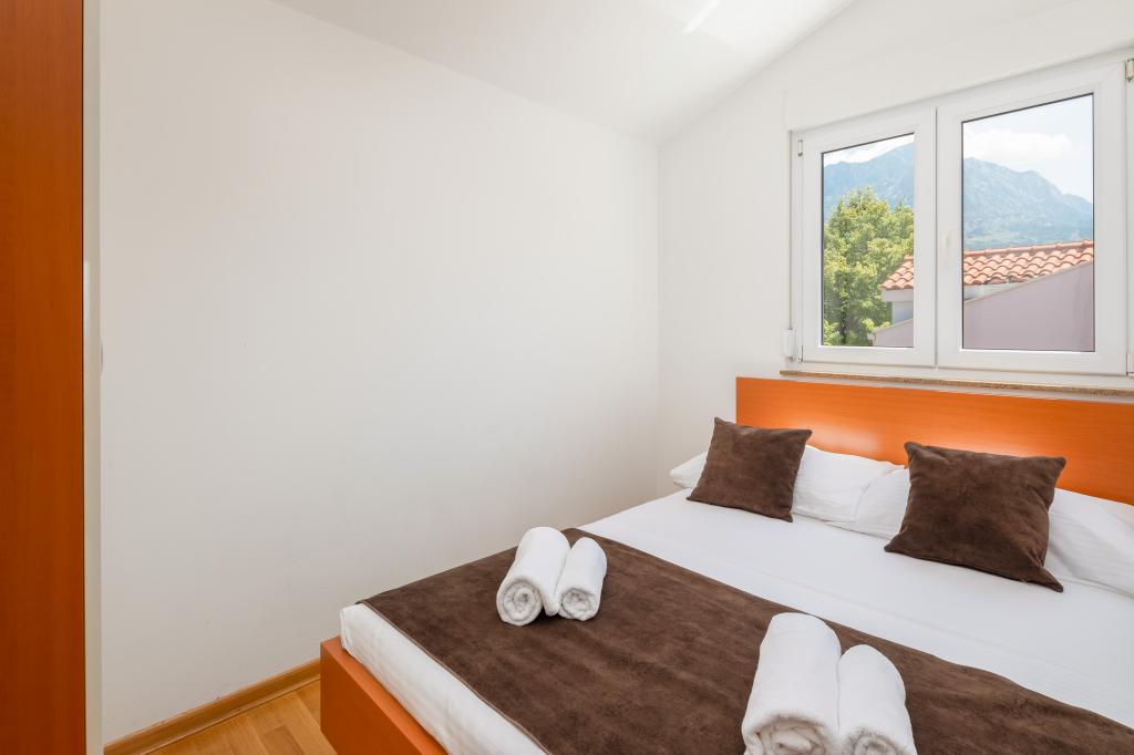 Az Apartments Teo Baška Voda strandjától 150 méterre található. Egy 4 fős apartmanból, majd egy 6 fős apartmanból és két 8 fős apartmanból áll. Az apartmanok konyhával, fürdőszobával, nappalival és saját erkéllyel rendelkeznek. A közös mosógép a garázsban található. Az épületen belül ingyenes a parkolás.