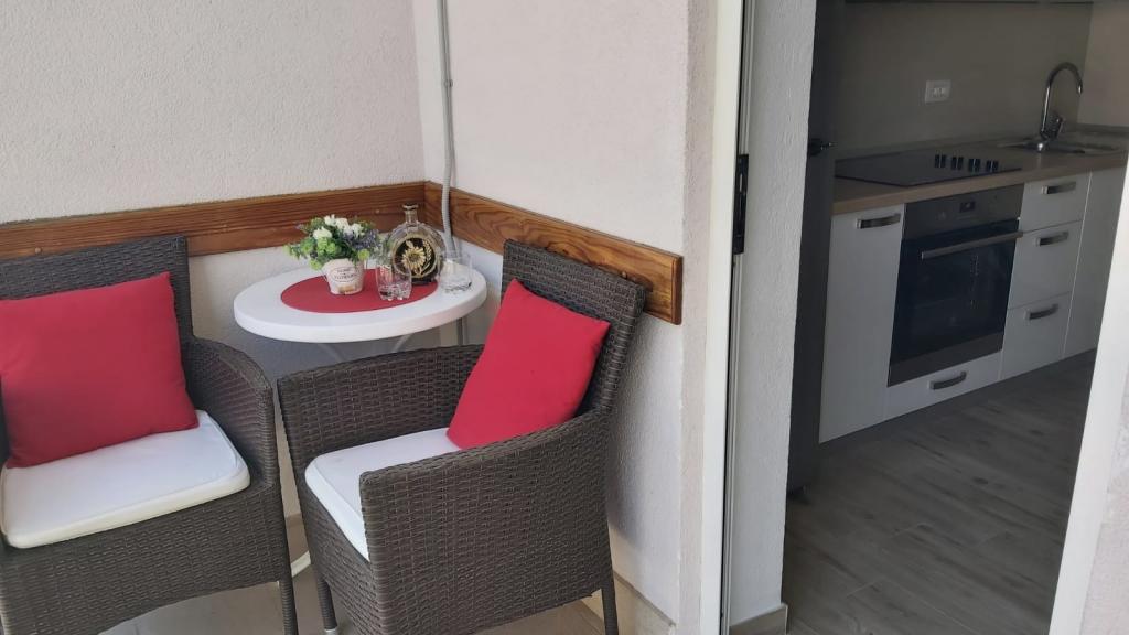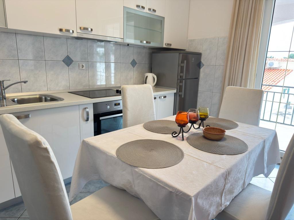 Nagyon szép apartman tengerre néző kilátással. Nagy konyha felszereléssel. Nagy terasz. Közel a kikötőhöz és a strandhoz, 5 perc sétára. A közelben orvos, pékség és bolt található. Nagyon kedves és segítőkész tulajdonosok. Hajnali 5-kor jöttek hozzánk elköszönni. A lakáshoz parkolóhelyek tartoznak. ajánlom