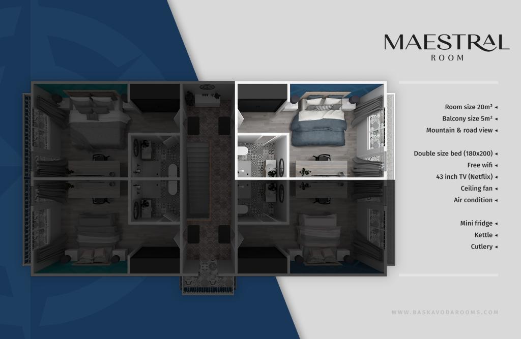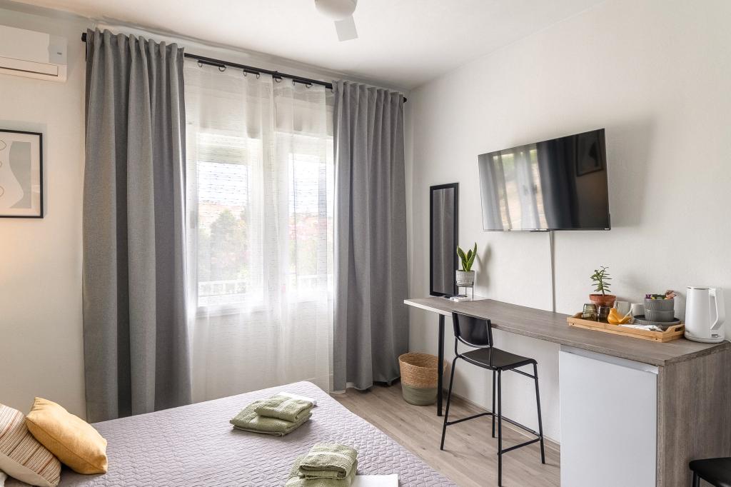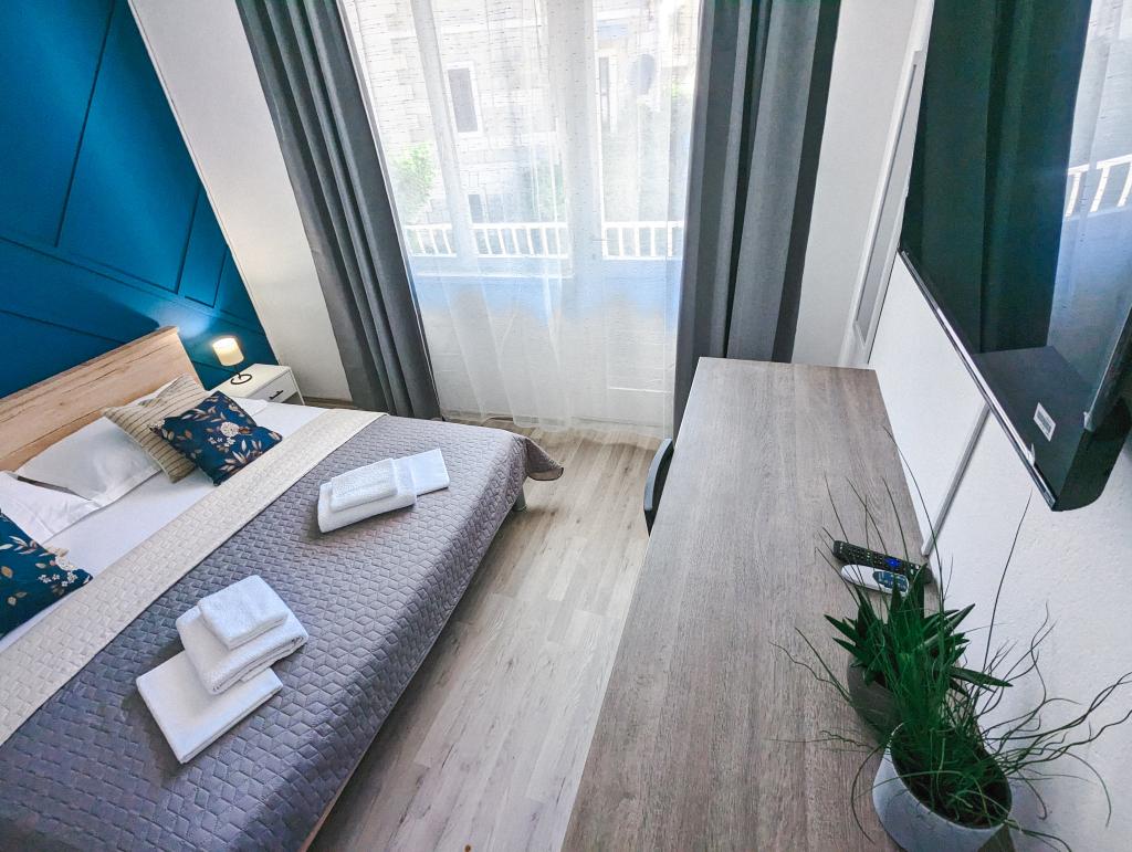 Privát szoba saját fürdőszobával és erkéllyel. A szálláshely a városközpontban található, a legközelebbi fő strandtól 200 méterre - 3 perc sétára.