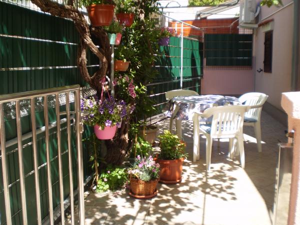 Apartman bájos egyszerűsége ellenére, viszonylag szerény. Szuper hely -, a szívében, a gyönyörű régi város, nagyon közel a fő sétáló utcán, és még nem jött semmilyen zűrzavar és zaj. Az egyetlen kellemetlenség, a harangszó a közeli templomba, de az, hogy meg lehet szokni. Szintén közel a strandhoz, ahol nem probléma nem talált helyet öregedés. A barátságos házigazdák, nagyon alkalmazkodó és segítőkész. Az apartman egy terasz az árnyékban a szőlő, ahol lehet enni és inni, és ünnepi lakoma a helyi bort.