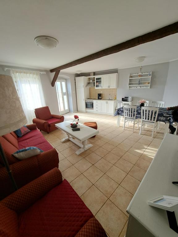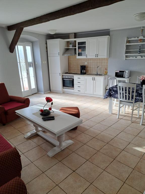 Az apartman a régi központban található. Az apartmanban két hálószoba franciaággyal és egy 1 személyes pótággyal (kihúzható kanapé. A földszinten nappali, étkező, konyha és fürdőszoba külön WC-vel. Az emeleten található a két hálószoba, egy wc és egy zuhanykabin. A lakáshoz tartozik egy terasz autóval a lakástól 300m-re A város azon részén tilos a forgalom.