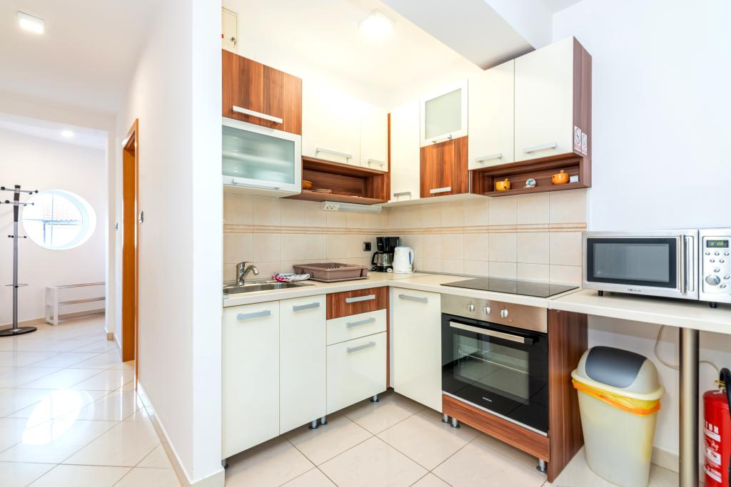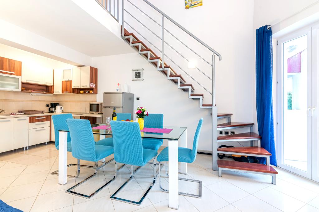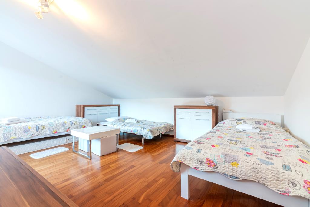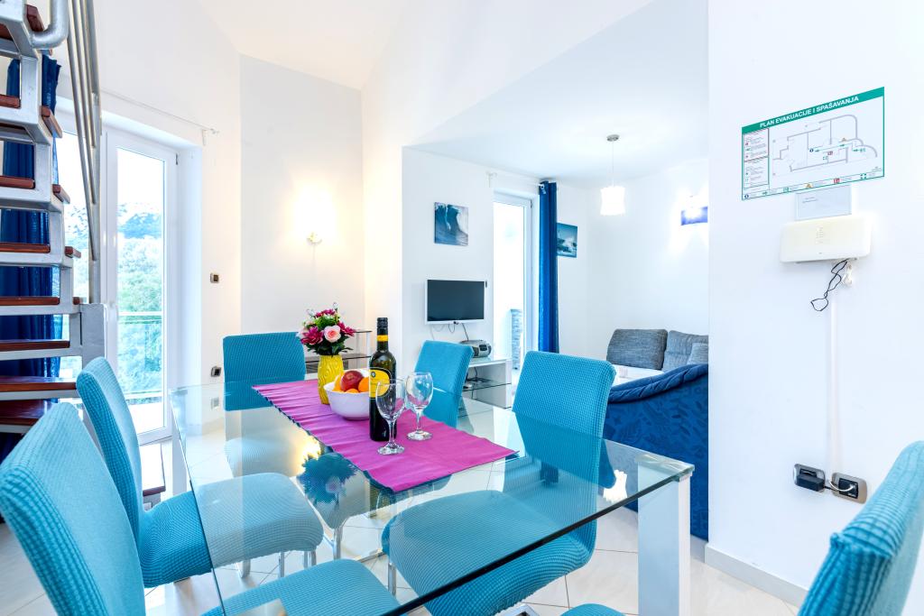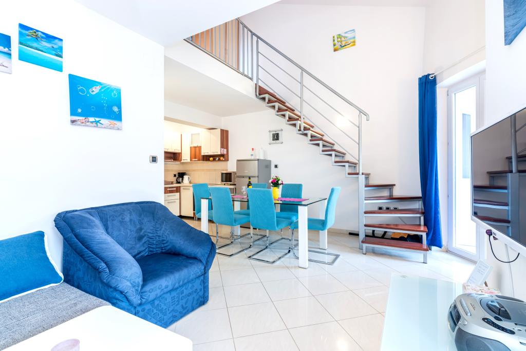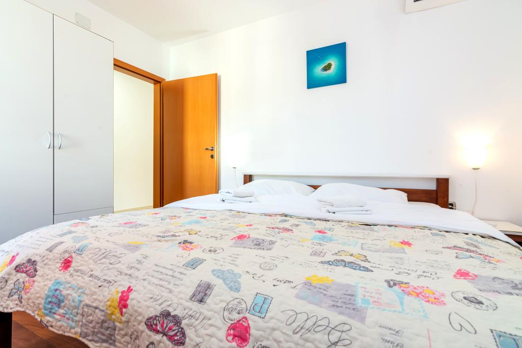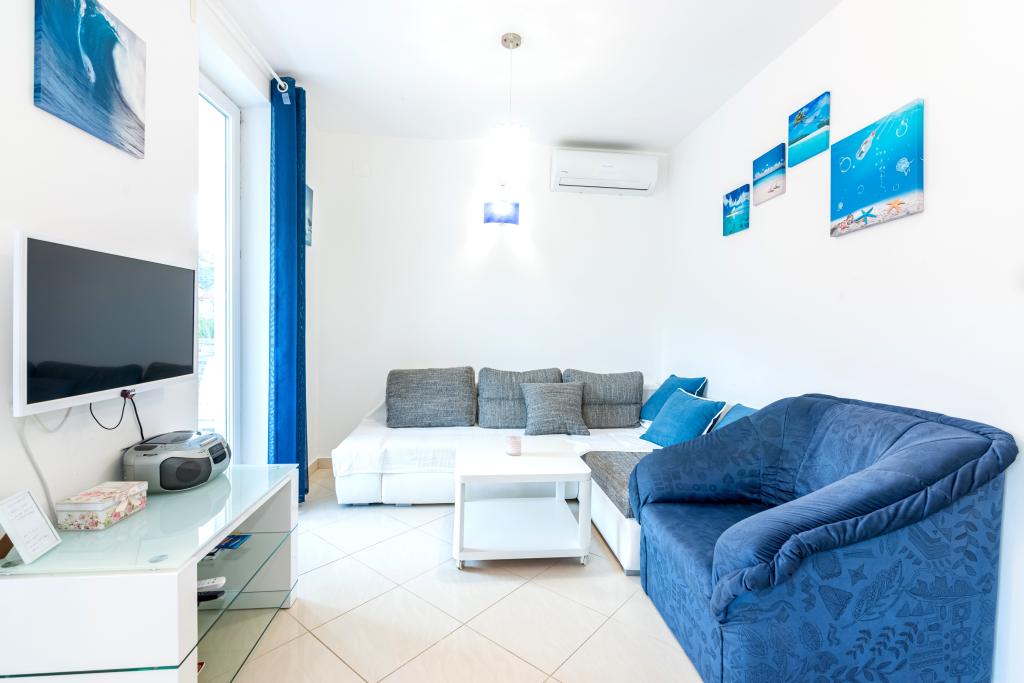 Az apartman a 2. és 3. emeleten található. 2 kétágyas szoba franciaággyal, 1 kétágyas szoba egyszemélyes ággyal, nappali 2 személyes kanapéval, 2 fürdőszoba, teljesen felszerelt konyha és étkező. Ez az apartman körülbelül 3 perces sétára található a központi strandtól. Ez a csendes környéken található, modern apartman 3 légkondicionálóval, ingyenes WiFi internettel, SAT-TV-vel, tágas terasszal és a ház előtt ingyenes parkolási lehetőséggel várja vendégeit. A létesítmény közelében egy kis bolt és étterem is található.