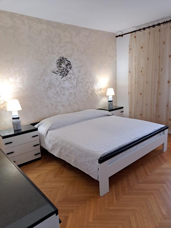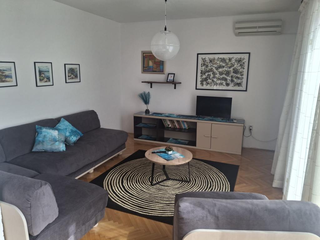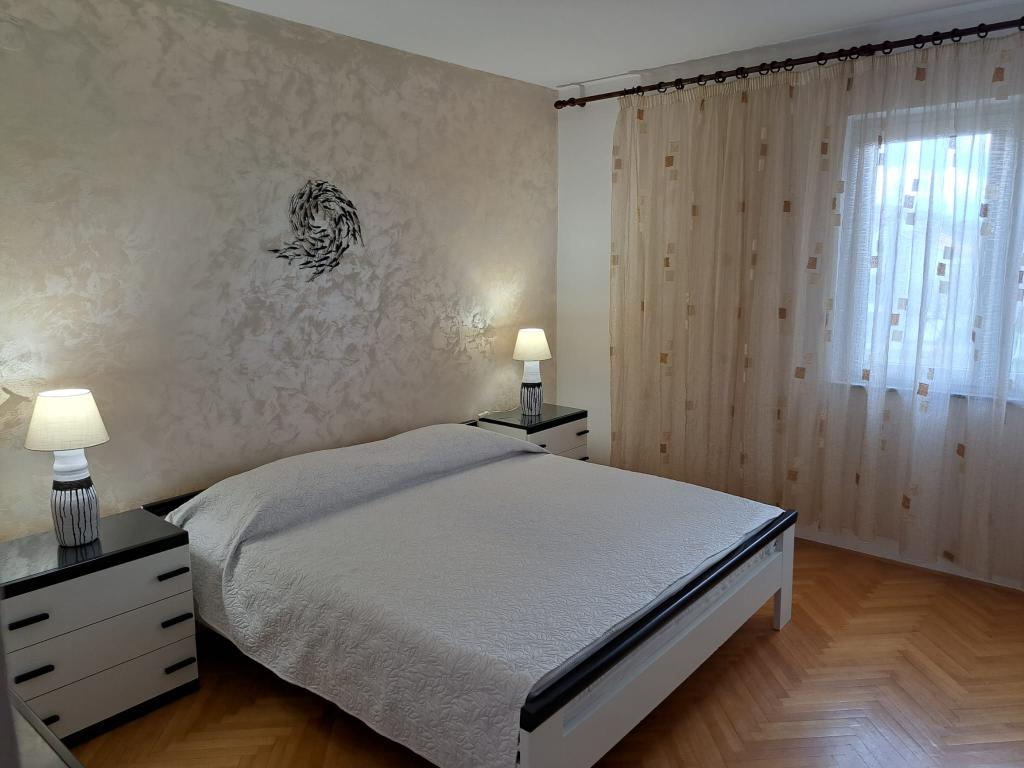Nagy apartman egy csendes környéken Baska, nagy terasszal az árnyékban két kupaonice.Parking a dvorištu.Ovaj lakás található a földszinten, és két kétágyas hálószoba, két fürdőszoba, külön konyha és étkező és egy nagy nappali dupla kanapéval . Van egy nagy terasz 20 négyzetméter. Parkolási hely a kertben az árnyékban. A lakás fel van szerelve légkondicionáló, műholdas televízió.