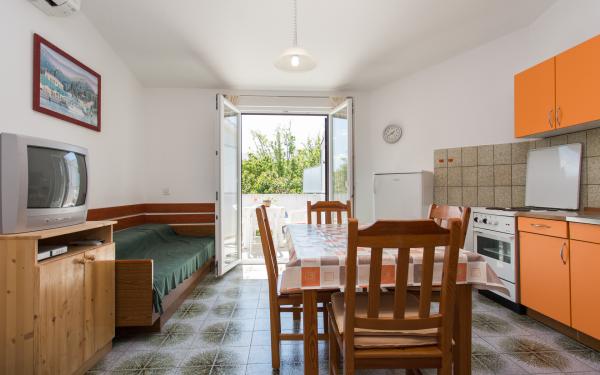 Marietta apartmanok Baska a szigeten. A házban található az utcán Stjepan Radic, a növényzet, ami velünk marad sokkal kényelmesebb a nyári melegben! Széles körben ismert Vela strand, éttermek és üzletek 300m így az utat a strandon vagy vacsora, nem kell használni az autót, mint a nyáron sokat jelent! Az otthon hat (6) lakások, amelyek három apartman két személynek és három apartman három fő részére. Minden vendég a kertben áll az Ön rendelkezésére, egy nagy asztal és padok. Parkolás is biztosított, és a ház mellett. Reméljük felkeltette érdeklődését az ajánlatunkat, és hogy úgy dönt, hogy töltse nyaralását jobb a lakásunkban!