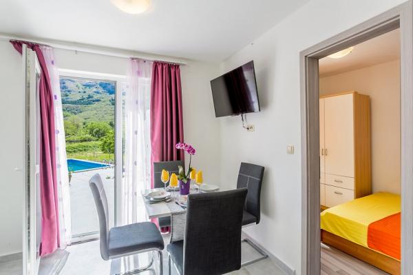 Tiszta és jól felszerelt apartmanok. Nagyszerű pihenés a medencére és a hegyekre néző teraszon. A bolt közelében. Mindenkinek valami szórakoztató - a lustáknak és az aktív pihenéshez. Kedves házigazdák. Ajánlom.