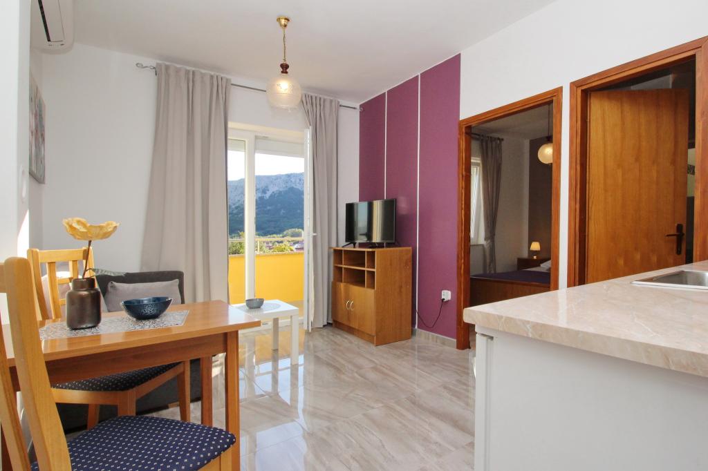 Az apartmanok Baška központjától 7 perc sétára, a gyönyörű kavicsos Vela strandtól pedig 9 perc sétára találhatók. A házban 7 felújított és gyönyörűen berendezett apartman található, amelyek légkondicionálóval, internettel és műholdas TV-vel felszereltek. Minden apartmanhoz egy parkolóhely tartozik.