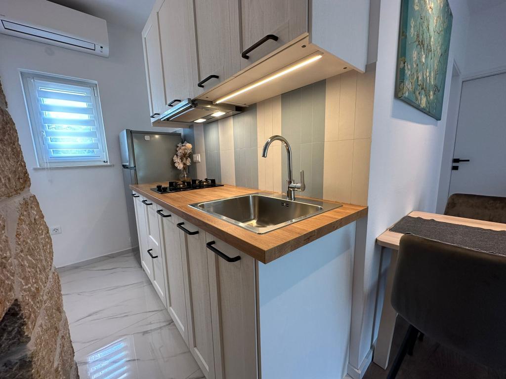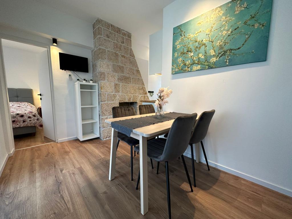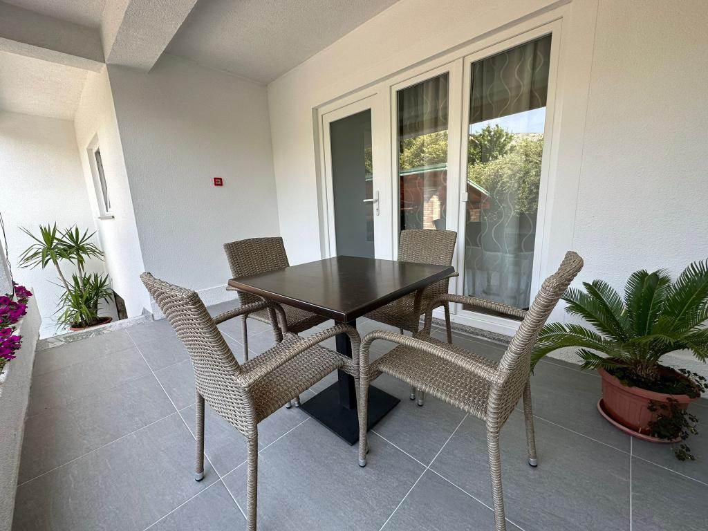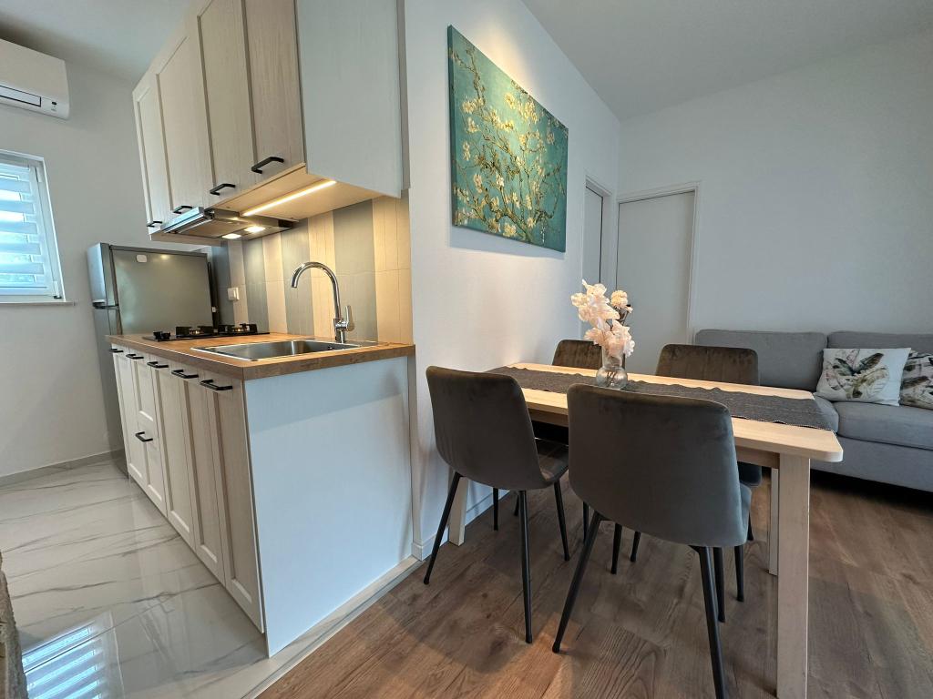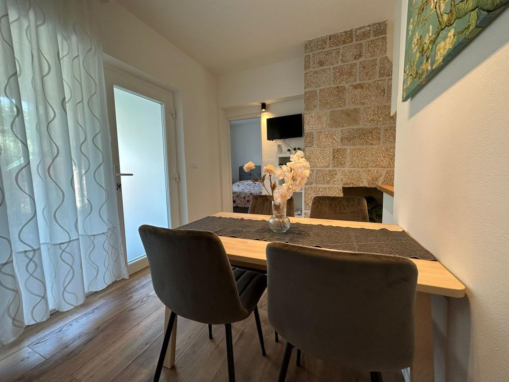 Az apartman nagyon jól felszerelt, és mindent tartalmazott, ami a hosszabb tartózkodáshoz szükséges (tűzhely, hűtőszekrény, klíma, kényelmes ágyak két hálószobában). A nagy terasz nagyszerű plusz a szabadban való étkezéshez és az úszáshoz szükséges cuccok szárításához. A grillezőt is igénybe vettük - a grillezéshez minden adott. Az apartman közel található a strandhoz, így csak a törölközővel lehet úszni/napozni - nem kell mindent cipelni, ha nincs kedve. A házigazdák férje nagyon barátságos és segítőkész.