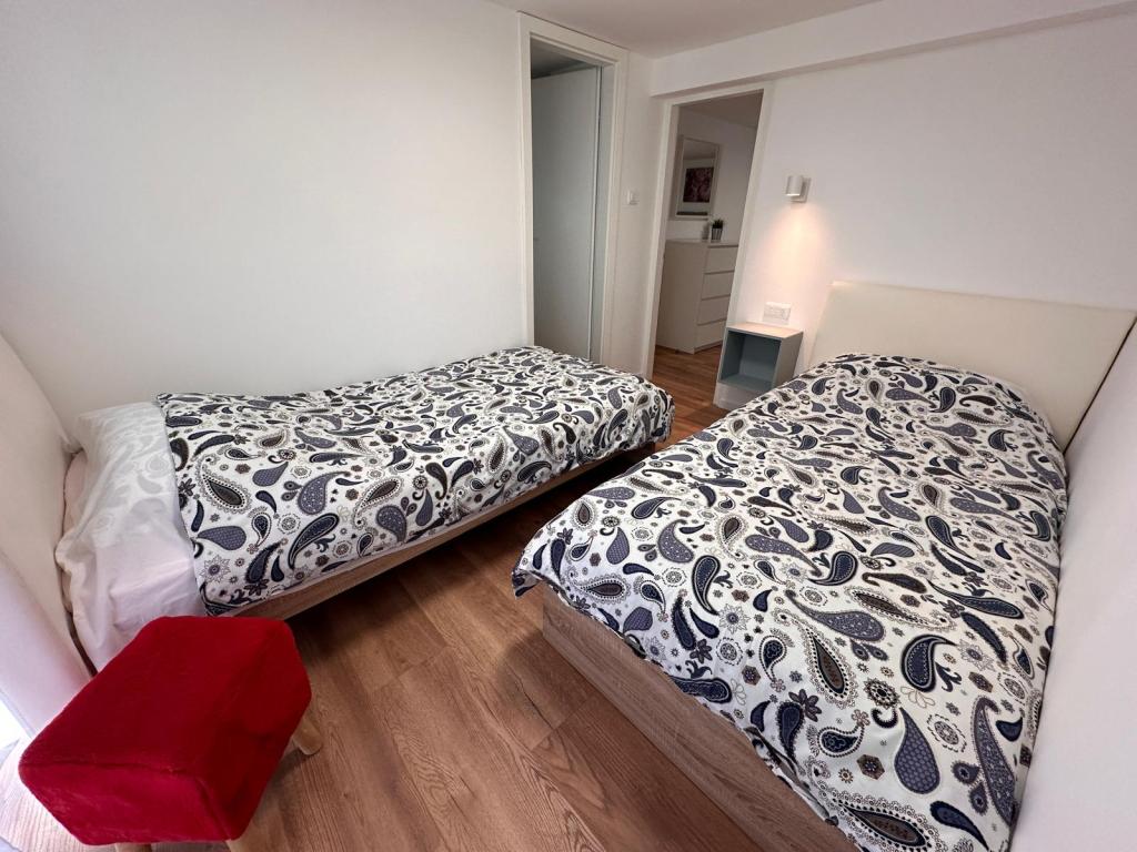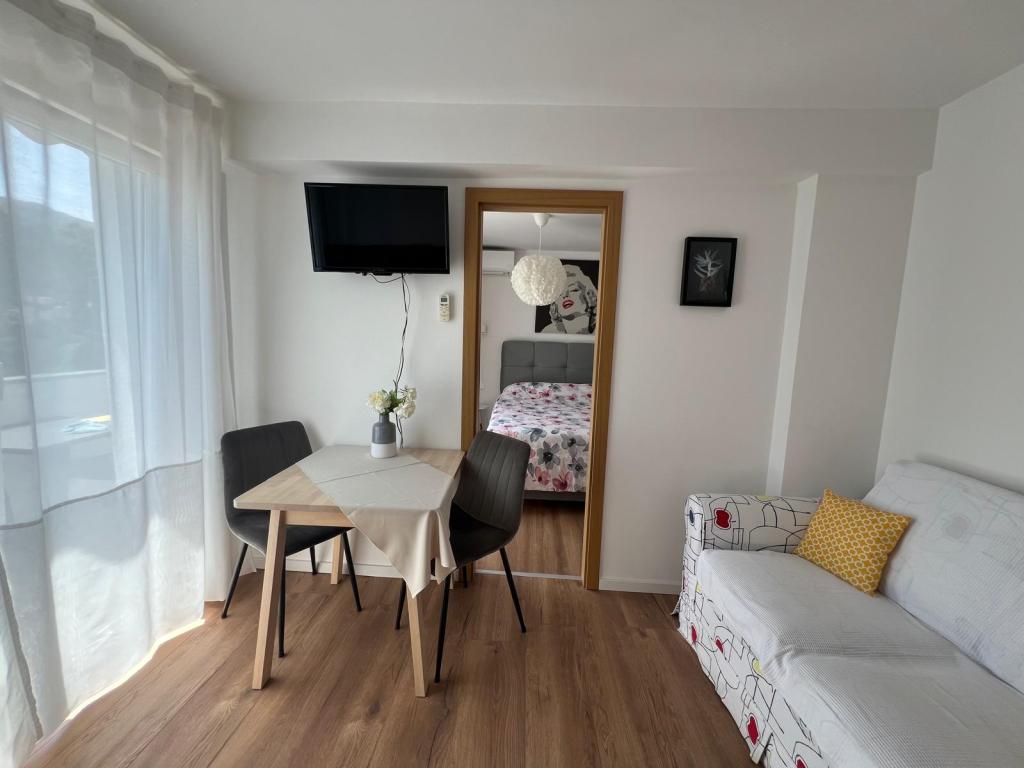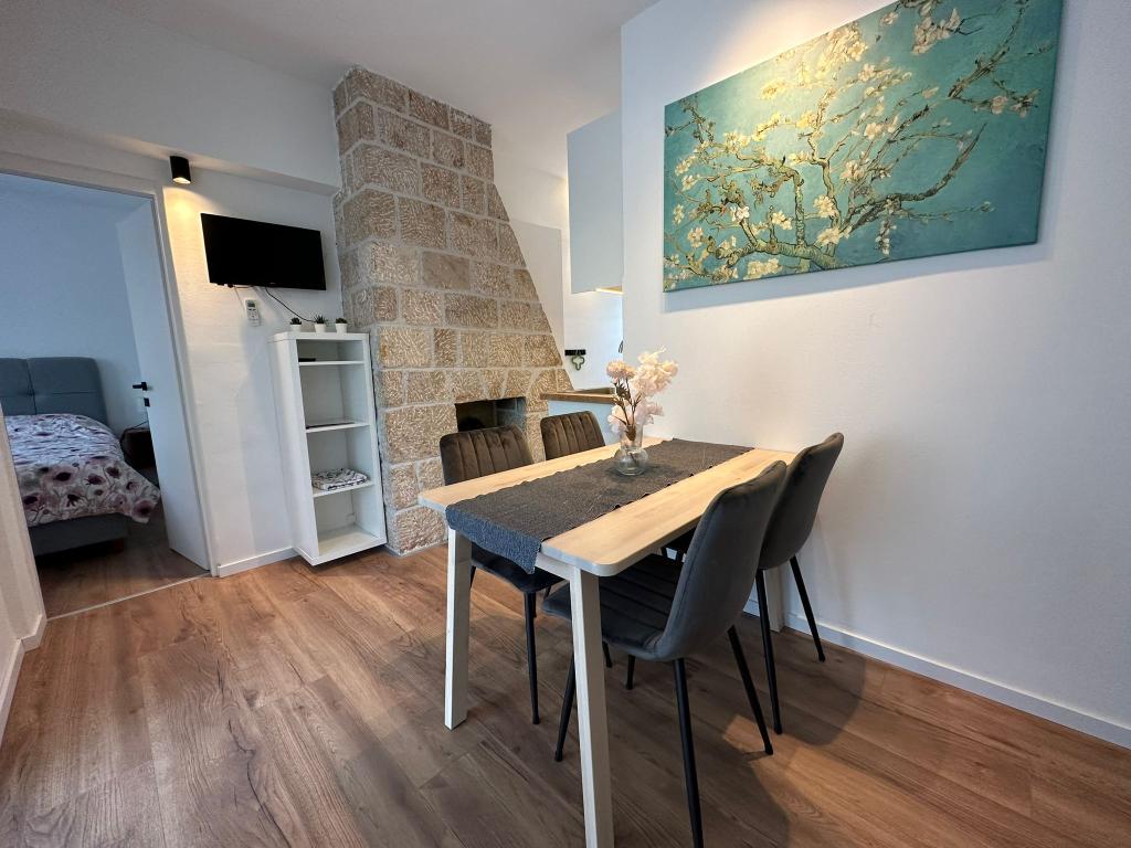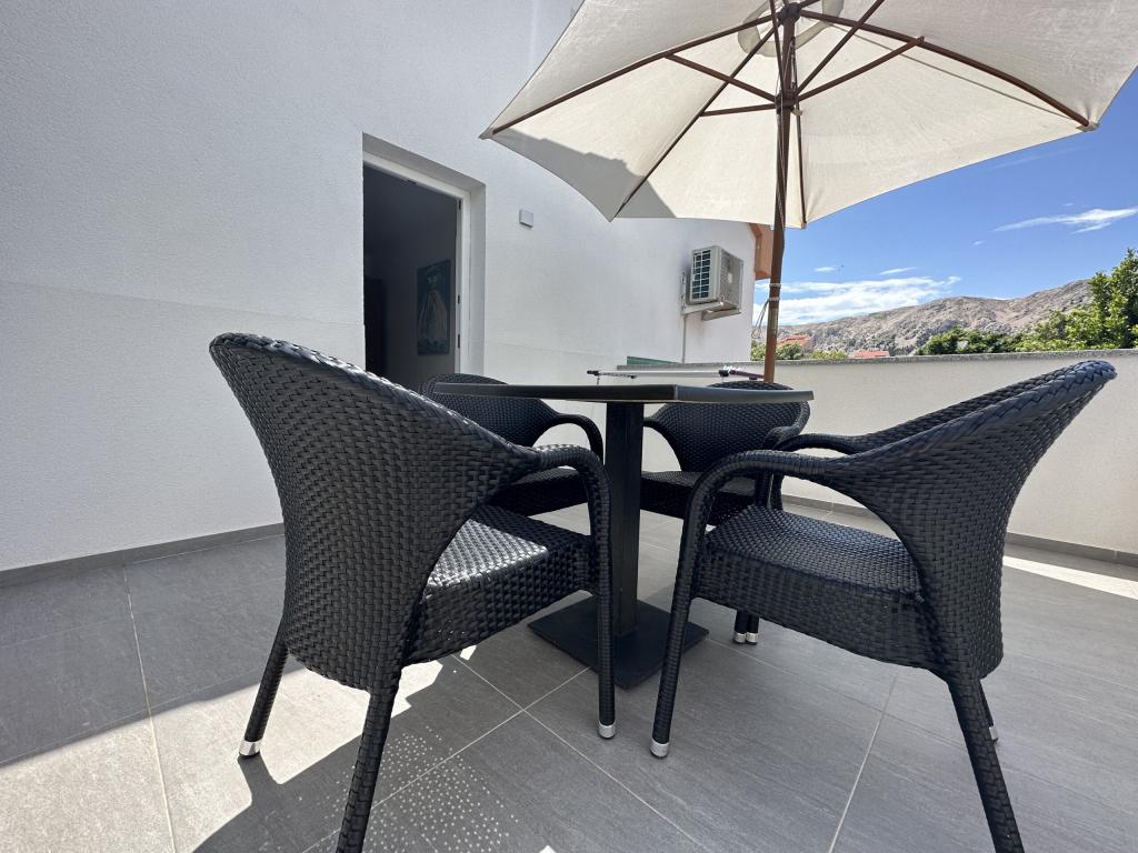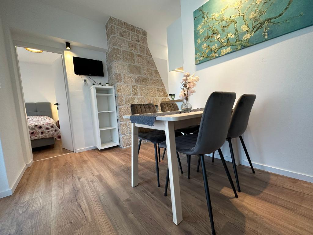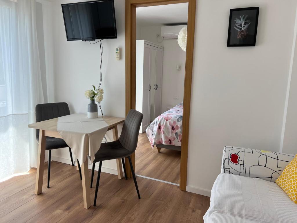 Az apartman nagyon jól felszerelt, és mindent tartalmazott, ami a hosszabb tartózkodáshoz szükséges (tűzhely, hűtőszekrény, klíma, kényelmes ágyak két hálószobában). A nagy terasz nagyszerű plusz a szabadban való étkezéshez és az úszáshoz szükséges cuccok szárításához. A grillezőt is igénybe vettük - a grillezéshez minden adott. Az apartman közel található a strandhoz, így csak a törölközővel lehet úszni/napozni - nem kell mindent cipelni, ha nincs kedve. A házigazdák férje nagyon barátságos és segítőkész.