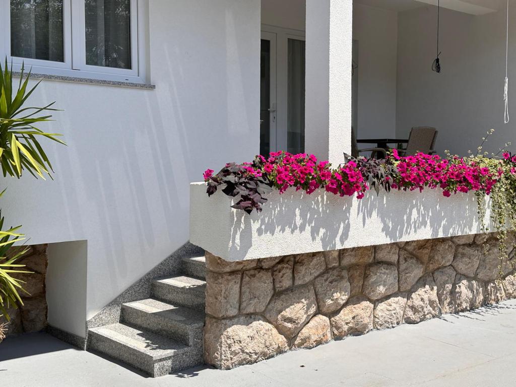 Az Apartments Fioribell Baška csendes részén található, mediterrán növényzettel körülvéve, ideális távolságra mindössze 50 méterre a Vela plažától, a sziget leghíresebb strandjától, ahová csak fürdőruhában, törölközővel lehet kimenni. A központ 100-200 m-re található, ahol minden szükséges kényelmi szolgáltatás megtalálható. Különlegességünk, hogy Baška egy sík részén vagyunk, minden létesítmény közelében, egy nagy, bekerített kerti terasszal, amely ideális a gyermekek számára, hogy játsszanak vagy élvezzék az árnyékot. A teraszon grillező áll minden vendég rendelkezésére. Van egy másik GRUH apartmanunk egy másik házban, 300 méterre a strandtól, 250-300 m-re üzletektől és éttermektől, 250 m-re a központtól. Minden apartman külön bejárattal, terasszal vagy erkéllyel rendelkezik, és teljesen felszerelt. Vendégeinknek ingyenes parkolási lehetőséget biztosítunk a ház előtt. Családi cégünkben, a RUBY-ban csónakbérlési és kirándulási lehetőséget kínálunk vendégeinknek, hogy felejthetetlen pillanatokat tölthessenek a környék gyönyörű strandjaival és városaival. Kedves vendégeink, egy pihentető nyaralást töltenek nálunk.