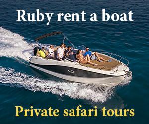 Lakossági adót nem az ár tartalmazza.A RUBY RENT A BOAT családi cégben bérelhet csónakot, új motorcsónakokat Quicksilver Sundeck 755 kabinos, Quicksilver 505, 605 és a legnagyobb 805 vagy felfújható Zodiac-Medline, és felejthetetlen pillanatokat tölthet el a gyönyörű strandok és öblök érintetlen természetében. és kristálytiszta tenger, jobbik felével vagy családjával és barátaival. Lehetőséget kínálunk csónak bérlésére is profi kapitányunkkal, aki felejthetetlen szafari túrákra viszi, ahová csak akarja. Várjuk látogatását