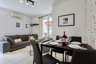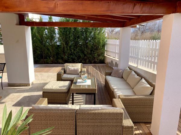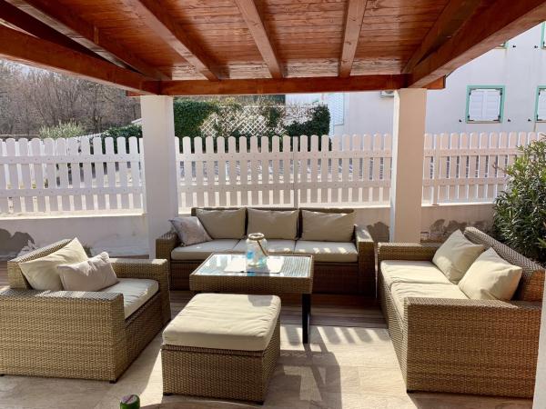 Modern berendezésű és teljesen felszerelt apartman nagy terasszal és kerttel. Baškában, Krk szigetének legnépszerűbb nyári üdülőhelyén található, amely a legszebb homokos strandjáról ismert. Az apartman egy csendes utcában található, mindössze 400 méterre a fő Bašča strandtól - Vela strandtól, az összes étteremtől, kávézótól és a 3 km hosszú strandot körülvevő sétánytól. Az apartmanhoz tartozik egy konyha főzőlappal, sütővel, hűtőszekrénnyel, szükséges edényekkel, vízforralóval, kenyérpirítóval, filteres kávéfőzővel. A hálószobában egy 160x200-as ágy és egy gardrób található. Fürdőszoba zuhanykabinnal. A nappaliban TV, parabolaantenna, nagy kanapé és étkezőasztal található. A második, 160x200-as ágy a nappaliban található. A lakás légkondicionált és korlátlan WIFI-vel rendelkezik. A terasz kerti bútorokkal van felszerelve, a kertben pedig a kerti nyugágyakon pihenhet és élvezheti a napsugarakat. Az épület előtt lakásonként 1 parkolóhely biztosított.