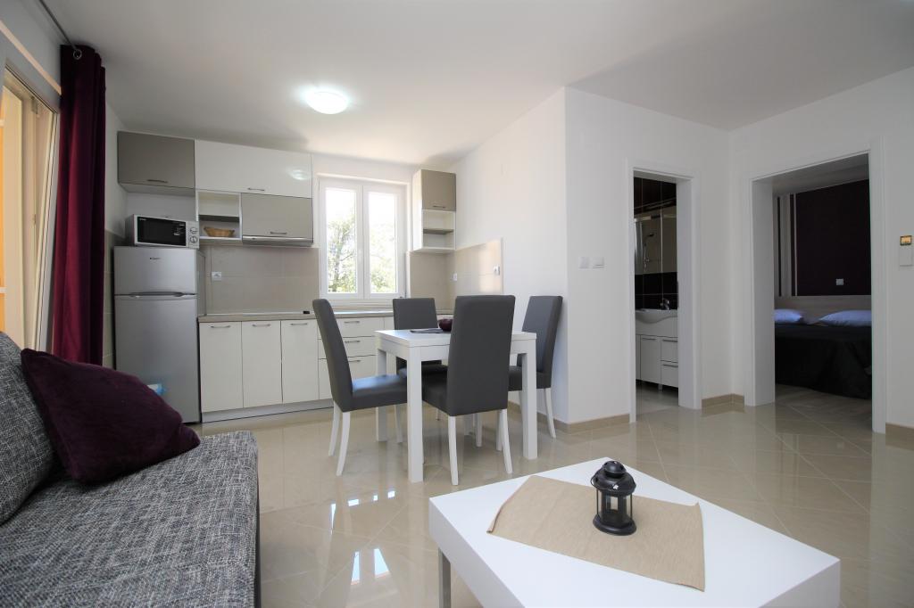 Modern berendezésű apartmanok, mindössze 5 perc sétára a gyönyörű Vela strandtól, közös kültéri medencével és grillezővel. A házban 9 apartman található, melyek mosogatógéppel, mosógéppel, széffel, légkondicionálóval, internettel és műholdas TV-vel felszereltek. Minden apartmanhoz tartozik egy parkolóhely. Háziállatok nem megengedettek.