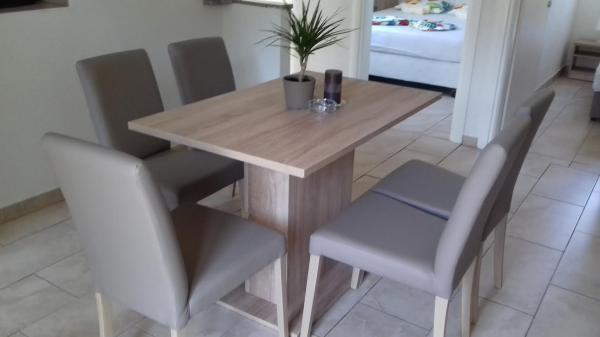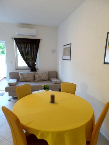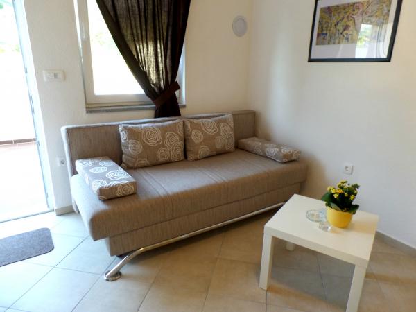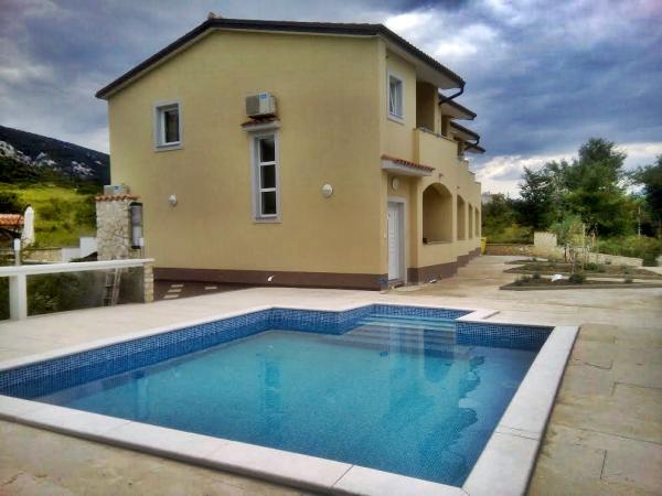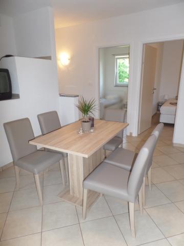 Az épületben 8 lakás található, melyből 4 földszinti egyszobás, 4 db kétszobás az emeleten található. A földszinti apartmanokhoz saját terasz és erkély, míg az emeleti apartmanokhoz saját erkély tartozik. A medence és a gázgrilles kültéri terasz közös helyiség, amelyet a ház minden vendége használhat.