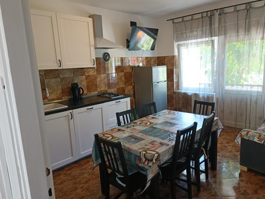 Családi ház 5 teljesen és korszerűen felszerelt apartmannal (földszint és első emelet) a falu csendes részén található. Csak néhány perc sétára a városközponttól és 1 perc sétára a városi strandtól. Két apartmanban egy-egy hálószoba, kettő két hálószobás és egy három hálószobás.