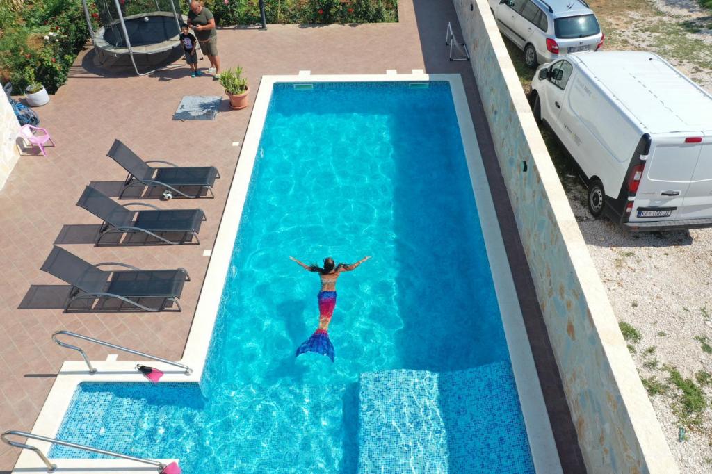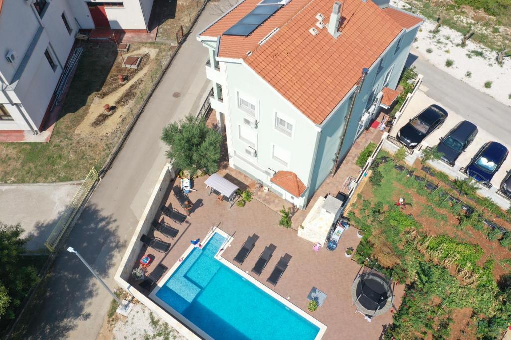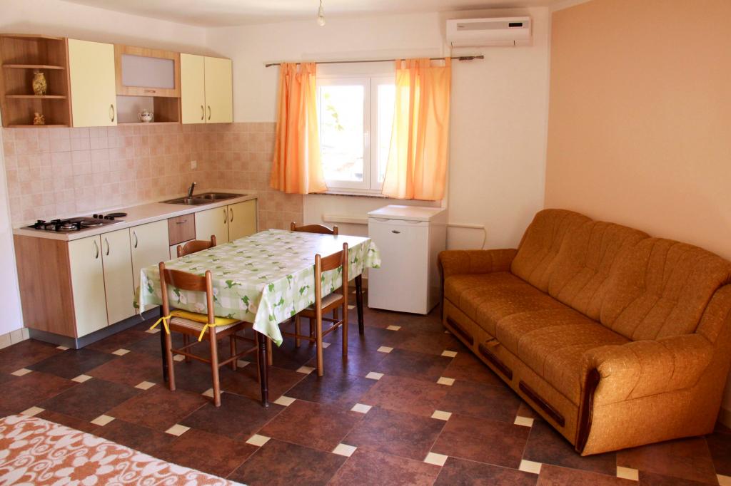 Bérelek egy teljesen bútorozott lakást, melyben nappali konyhával, minden szükséges edénnyel, főzőlappal, étkezőasztallal és ülésekkel, hűtőszekrénnyel rendelkezik. Minden apartman saját, zuhanyzós fürdőszobával rendelkezik, és az apartmanban található. Az apartmanok légkondicionálóval és TV-vel felszereltek. Ingyenes internet használat. Ingyenes parkolás az objektum előtt. A lakás előtti terasz használata asztallal és ülésekkel. Kedvező árú taxi szállítás lehetősége a lakásba és vissza (60kn / fő, min. 2 fő). A medence 01.06.-09.15. között használható.