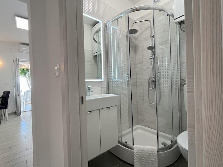 Apartmanok Mikulandra található, közvetlenül a tengerparton a tenger mellett, egy csendes részén a dátumokat. Ideális választás azok számára, akik szeretnék élvezni az egész napos úszás és napozás, nyugodt és unburdened keresek strand, és amikor a béke és a pihenés akarják cserélni a nyüzsgést, mindössze 15 perc alatt tud jönni Zadar és élvezze a szépség és látnivalók Európa legnépszerűbb úti cél a 2016. évre. A közelben van egy élelmiszer-piaci és éttermek. Minden apartman rendelkezik terasszal, amely szép kilátással a tengerre, a szigetek és a híres naplemente. Minden apartman teljesen felújított, tavaly, modern opremljenisa légkondicionáló, fűtőberendezések, és mosogatógéppel (AP2 és AP4). Nem messze a lakás parkoló zár alatt a vendégek számára. A teraszon egy grill, amely felhasználható az összes vendég. Apartmanok Mikulandra hosszú hagyománya van. Meztelen fogadja vendégeit a több mint 30 éve. Üdvözöljük !!!!