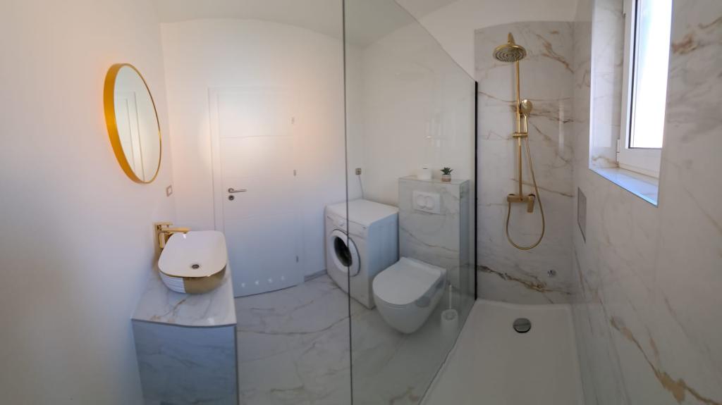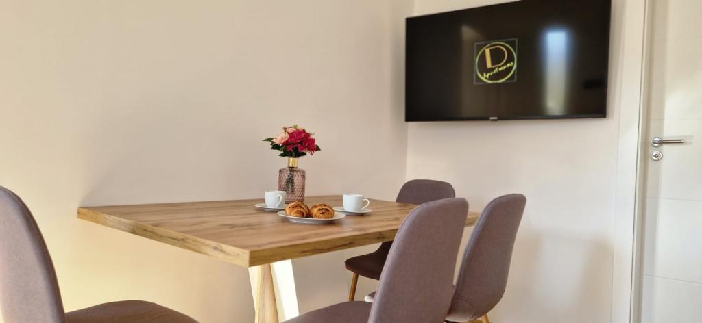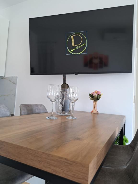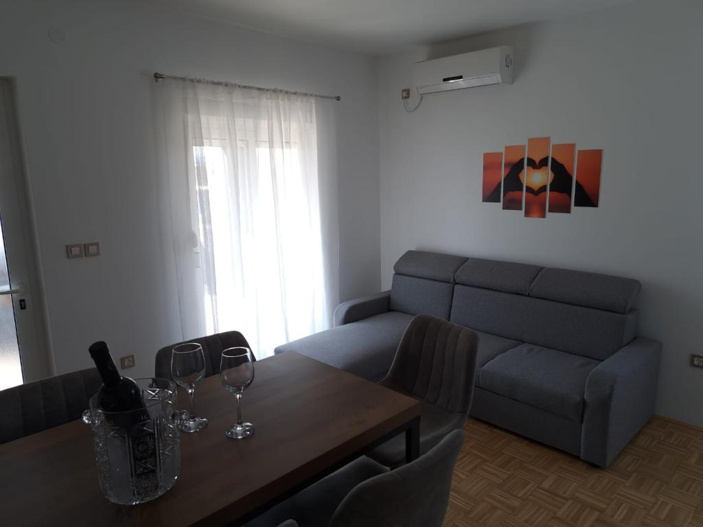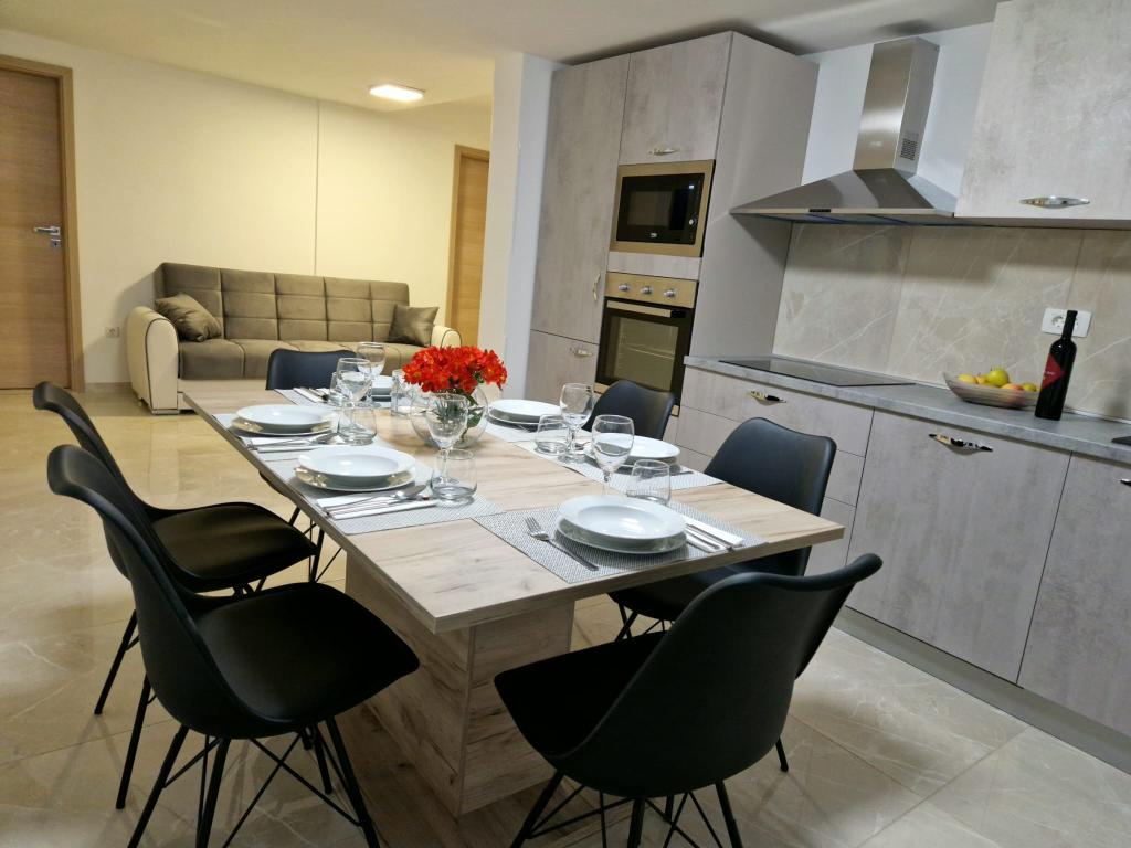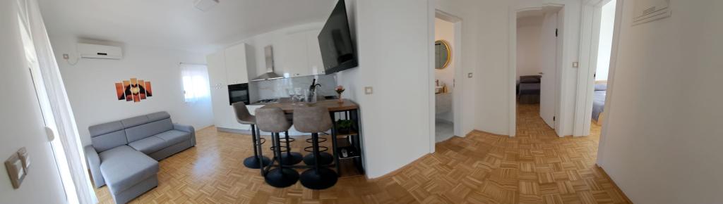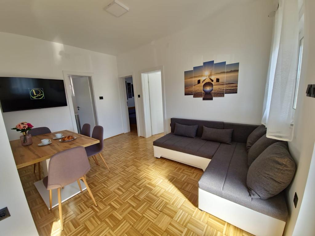 A D apartmanok a Karabana strandtól 100-150 m-re (3-5 perc séta), a Sulterova vala strandtól 400 m-re, a zadari repülőtér 12 km-re (rövidebb úton 5 km-re) találhatók. Az Apartments D ingyenes parkolási lehetőséget, ingyenes Wi-Fi-t, teraszt/erkélyt, kertre néző kilátást, pihenősarkot, síkképernyős TV-t, légkondicionált szállást, teljesen felszerelt konyhát kínál hűtőszekrénnyel, sütővel, mosogatógéppel, mikrohullámú sütővel, főzőlappal, vízforralóval, kenyérpirító és saját, zuhanyzós fürdőszoba áll rendelkezésre. A benti közös grillsütő előzetes egyeztetés alapján vehető igénybe. Bibinje (több mint 4000 lakosú) Zadar történelmi városától 6 km-re délkeletre található (10 perc autóval vagy busszal), az Adriai Turisztikai út és a tenger között, négy kilométeres partszakasszal rendelkezik strandokkal és ösvényekkel, valamint sétálni a tengerparton. A sétány reggel és este különleges élmény a tenger mellett. A helyi éttermek a régió különleges ételeit kínálják, vannak kávézók, kis üzletek, piac, s
