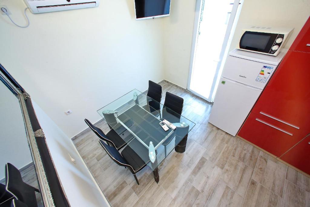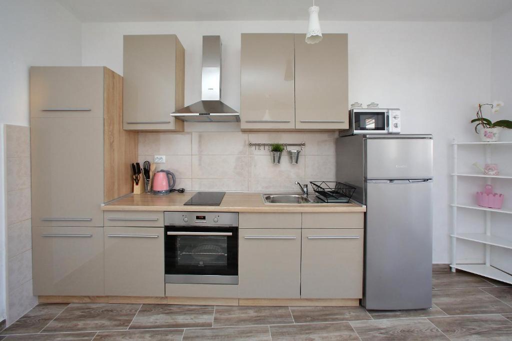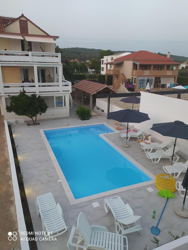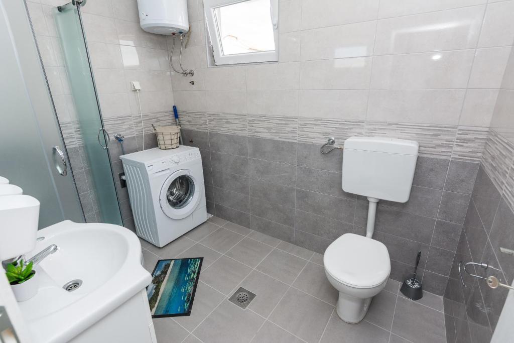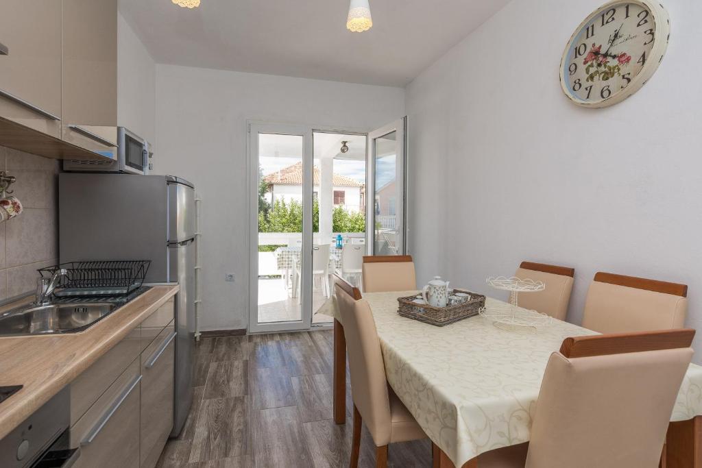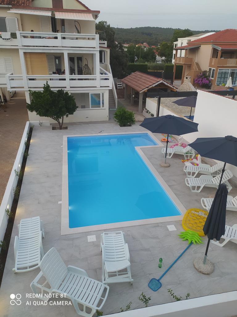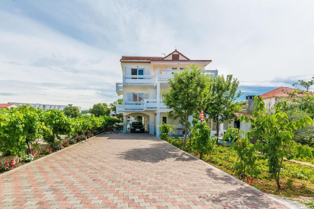 Az Apartments Mirko és Ana 400 méterre található a Punta Rožica strandtól, légkondicionálással, Wi-Fi-vel és saját parkolóval. Ezek a háromcsillagos apartmanok saját medencével rendelkeznek. Az apartmanok saját terasszal, kertre és medencére néző kilátással, ülő- és étkezősarokkal, TV-vel, felszerelt konyhával és saját fürdőszobával rendelkeznek. Minden apartmanban ágynemű és törölköző biztosított. A vendégek az udvaron grillezőt is használhatnak kerti bútorokkal. A vendégek a medence mellett is pihenhetnek a napernyőkkel ellátott napozóágyakon. A Dalmacija kikötő 1 km-re, a Škaljica strand pedig 700 méterre található. A legközelebbi repülőtér 9 km-re található.