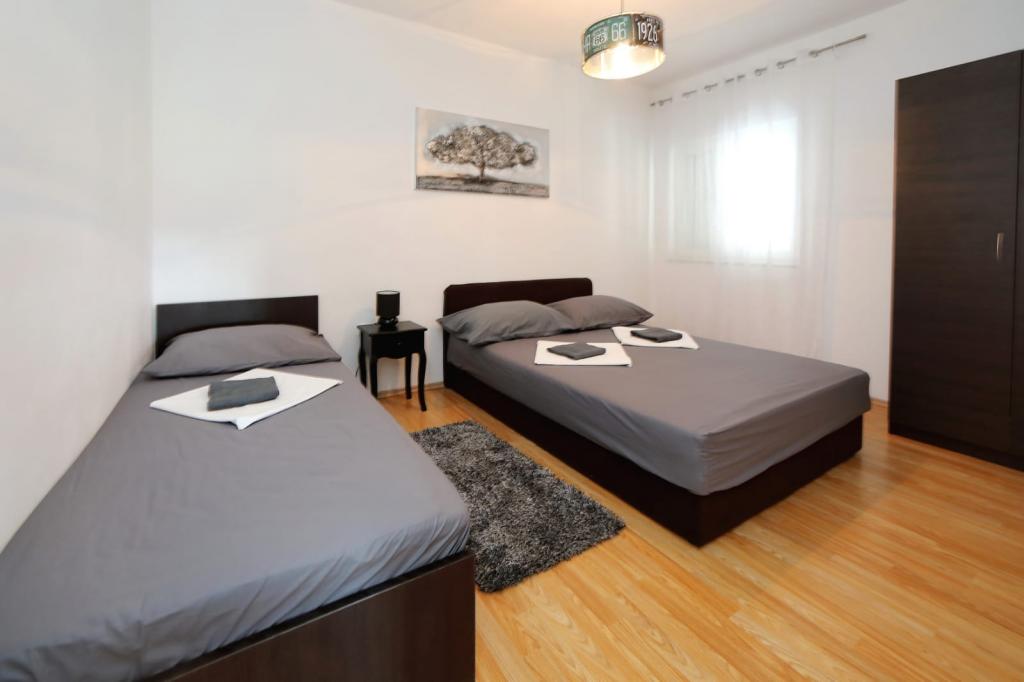 Luxusan berendezett, három hálószobás Neli apartman, három hálószobával, a tenger közelében található, Bibinje városában. A lakás teljesen felszerelt, három hálószobával, két fürdőszobával, konyhával és minden eszközzel, nagy hűtőszekrénnyel fagyasztóval, sütővel, vízforralóval, kávéfőzővel, mosogatógéppel ... az apartmannak nagy terasza van, kilátással a tengerre és a szigetekre, wifi, műholdas TV, légkondicionáló és parkolás a ház előtt. Közel üzletek, étterem központ és buszmegálló közelében