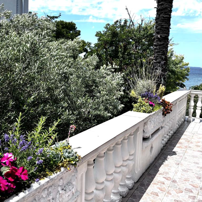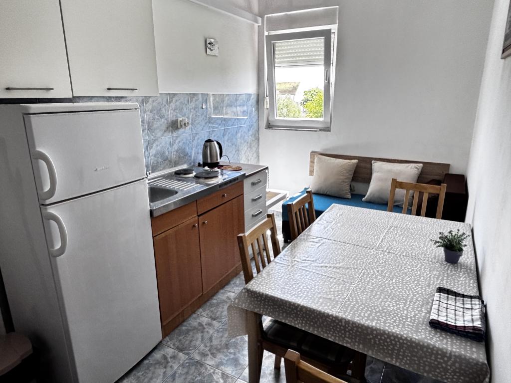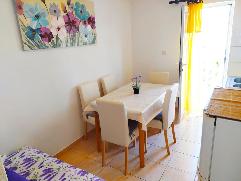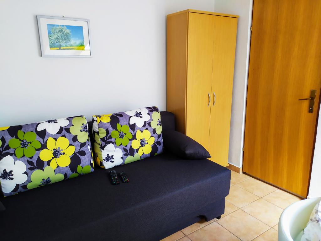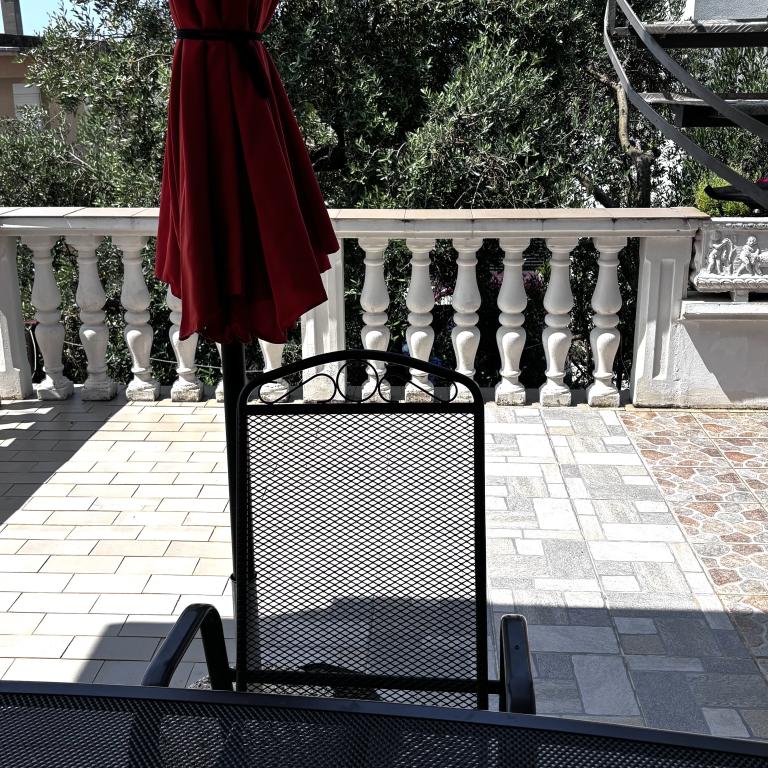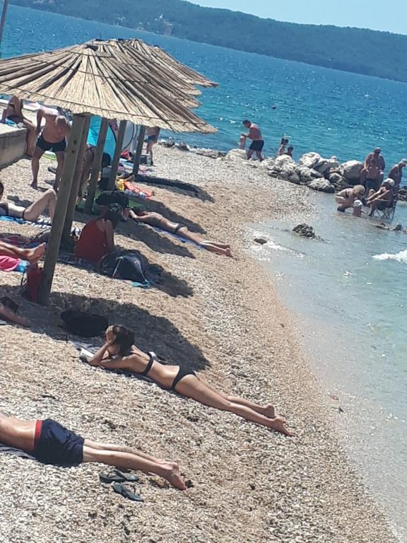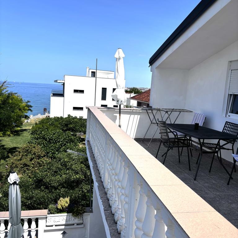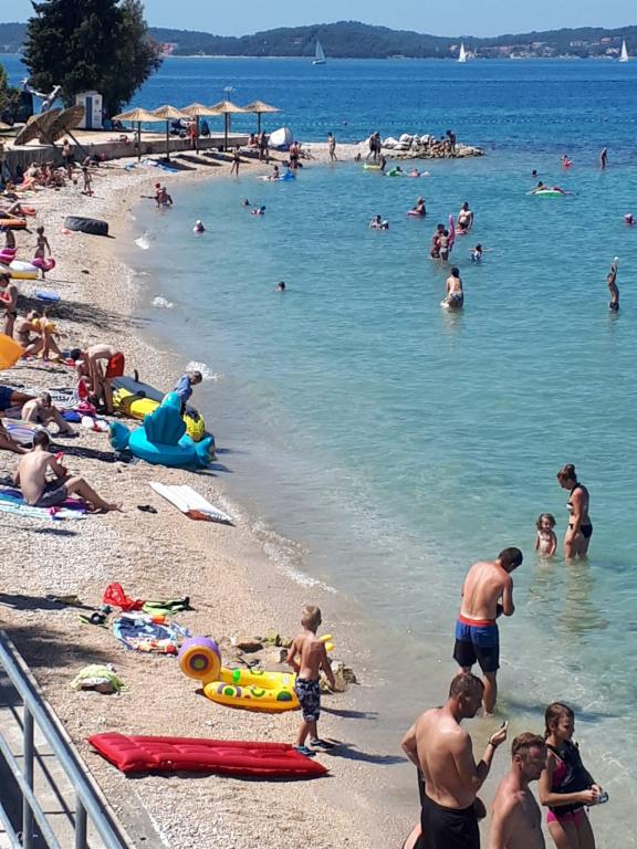 A családi ház a város egy csendes részén található, a Punta Rožica stranddal határos, az első sorban a tengertől. A strand 10 méterre található. Gyermekes családok számára alkalmas. A strand úszni nem tudók számára is alkalmas. Az 1. és 2. emelet kiadó. Mi a földszinten lakunk, amit nem adunk ki bérbe. 6 apartmanunk és egy kétágyas szobánk van fürdőszobával és külön konyhával. A közelben található egy piac, gyorsétterem, éttermek, minden 200 méteren belül megtalálható. Parkolás a szálláshelyen belül biztosított. Néhány szálláshelyen háziállatok megengedettek napi 5 euró felár ellenében.