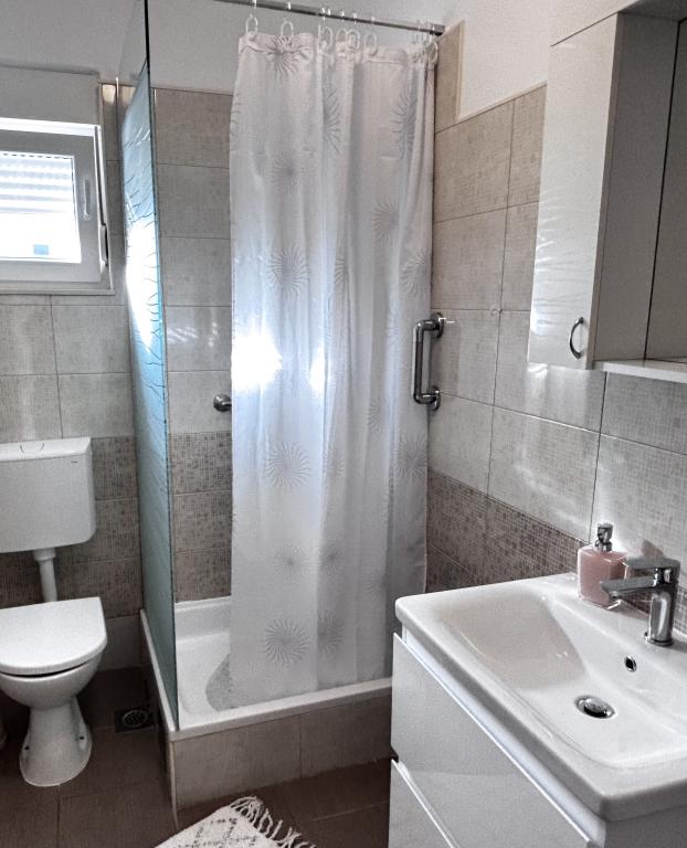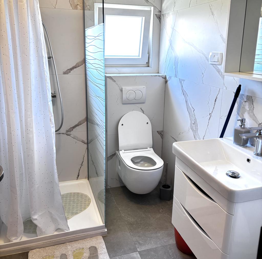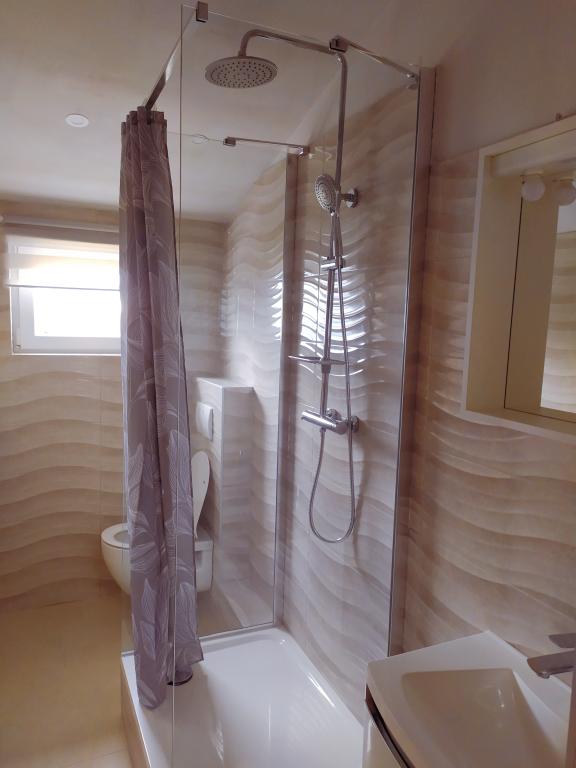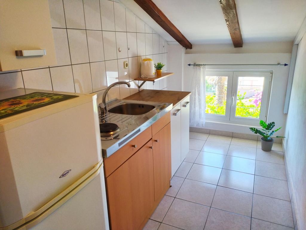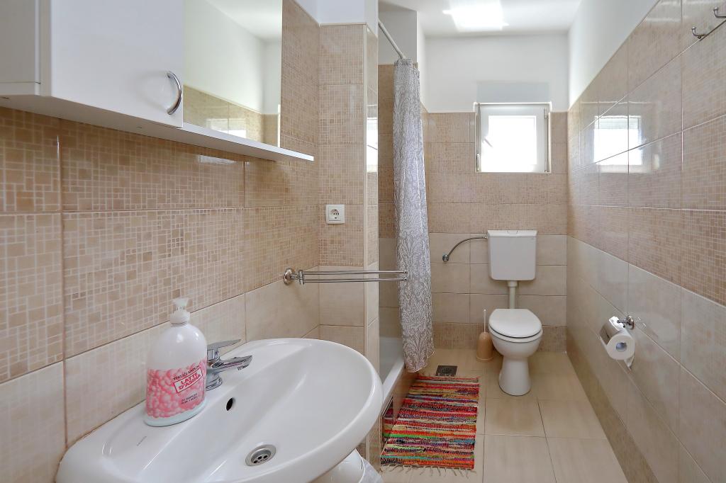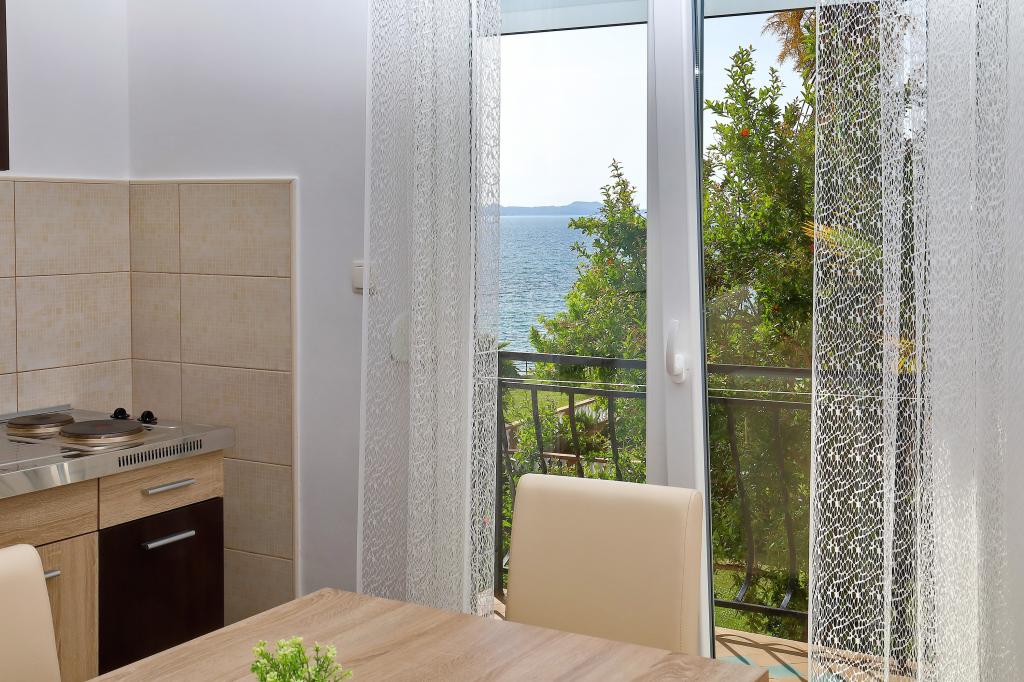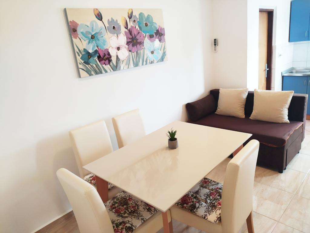 A családi ház a város egy csendes részén található, a Punta Rožica stranddal határos, az első sorban a tengertől. A strand 10 méterre található. Gyermekes családok számára alkalmas. A strand úszni nem tudók számára is alkalmas. Az 1. és 2. emelet kiadó. Mi a földszinten lakunk, amit nem adunk ki bérbe. 6 apartmanunk és egy kétágyas szobánk van fürdőszobával és külön konyhával. A közelben található egy piac, gyorsétterem, éttermek, minden 200 méteren belül megtalálható. Parkolás a szálláshelyen belül biztosított. Néhány szálláshelyen háziállatok megengedettek napi 5 euró felár ellenében.