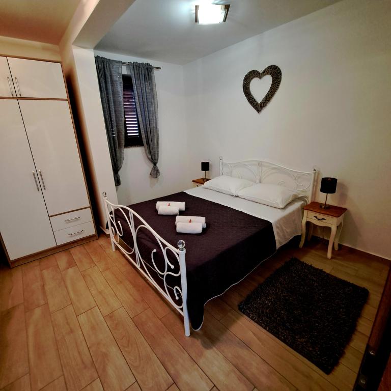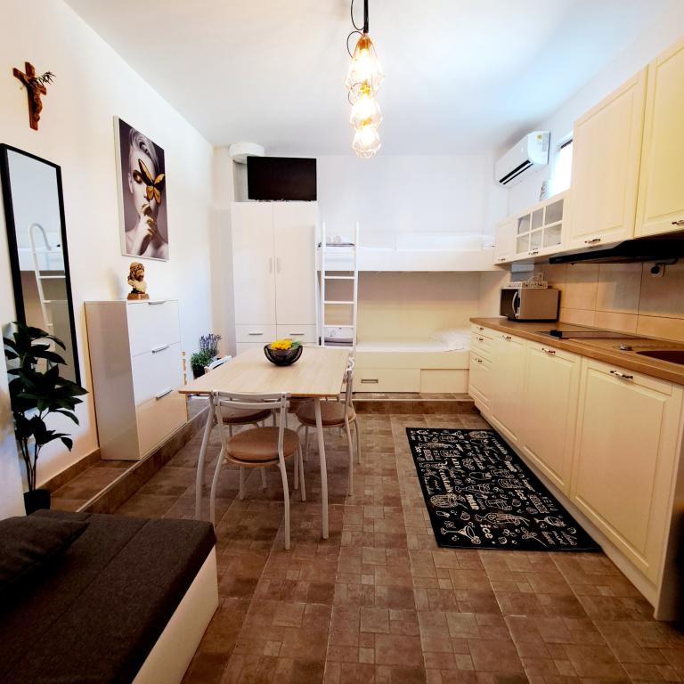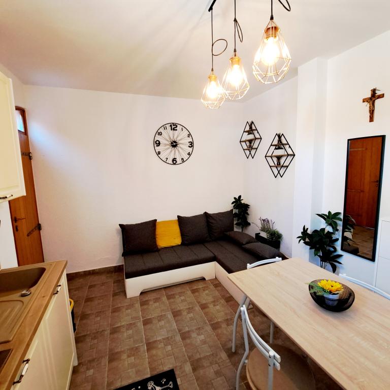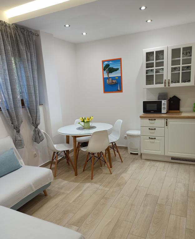 Gyönyörű lakás, minden nagyon tiszta és rendezett. Nagy terasz, udvar, árnyék és béke. A strand 2 perc. A házigazdák pedig nagyon kedvesek, mindig az Ön szolgálatára, vendégszeretőek, csodálatosak. Otthon éreztük magunkat kedves barátaink körül. Az apartmanokat és a házigazdákat ajánljuk mindazoknak, akik élvezni akarják a békét és mégis közel vannak a tengerhez.