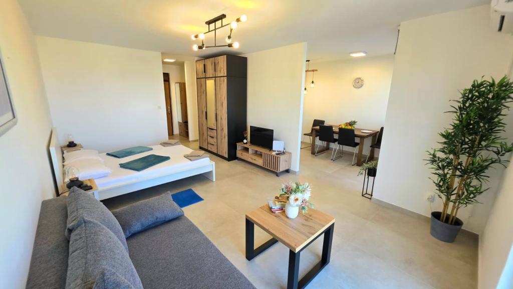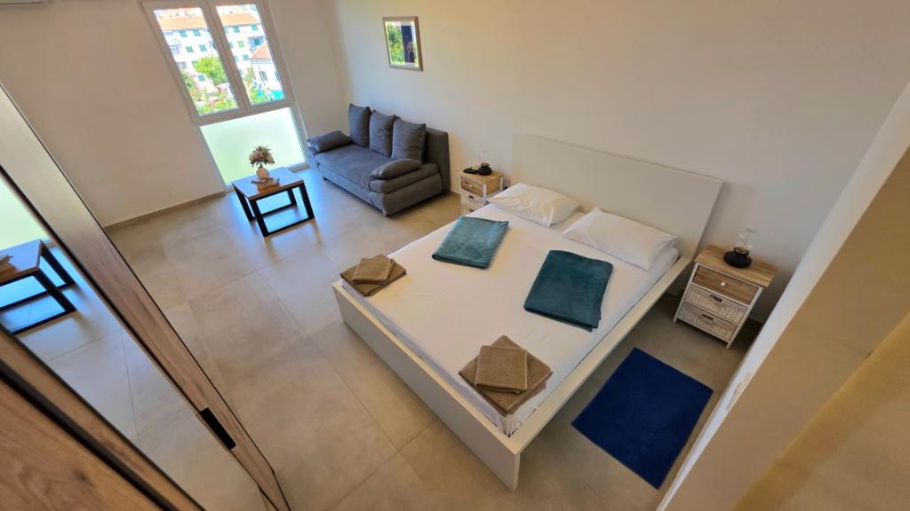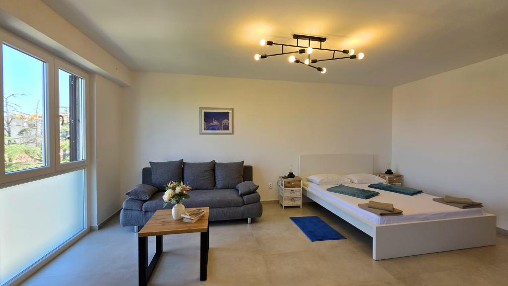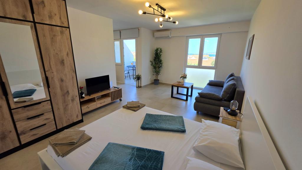 Újonnan felújított apartman Biograd központjában. Minden alapvető szolgáltatás, például éttermek, kávézók, cukrászdák, üzletek stb. a közelben található. A strand 5 perc sétára található. Az erkélyről kilátás nyílik a tengerre és Biograd központjára. Az apartmanban mosogatógép és mosógép is található. A buszpályaudvar a közelben található. Az apartman egy lift nélküli épület negyedik emeletén található.