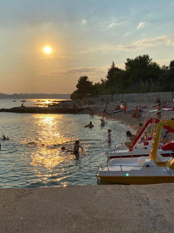 A kétszobás apartman a Kumenat településen, a Soline strand és a Crvena luka közötti öbölben található. 1 sor a tenger felé, teljesen bútorozott, zuhany törölköző és ágynemű, WI FI. Maximum 4 fő részére. 1 ingyenes parkolóhely biztosított. Közel üzletek, vidámpark Biograd, éttermek a Soline táborban, Soline homokos strand szórakozási lehetőséggel kicsiknek és nagyoknak kb.800m-re.