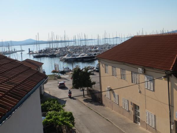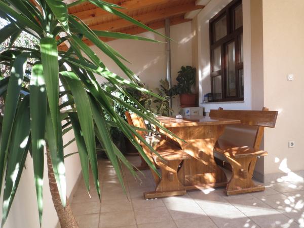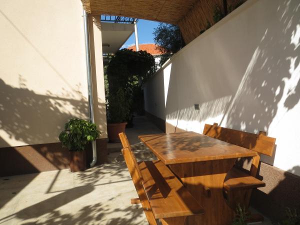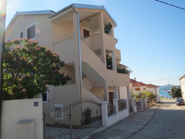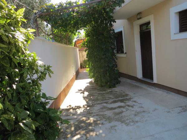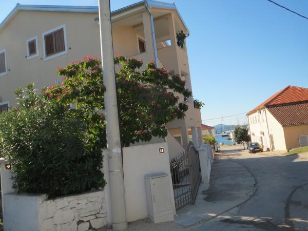Az apartmanok az épület földszintjén találhatók. A nagyobb lakás parkolása az udvarban, a kisebb lakás nagy terasszal, ingyenes parkolás az udvaron kívül. A ház 50 m-re található a tengertől, a központ közelében, a város egy csendes részén, a kikötő közelében, 150 m-re a strandtól, minden közel van éttermekhez, üzletekhez, gyógyszertárakhoz, egyszóval amikor megérkezik, parkol és nem használja az autót az ünnep végéig.